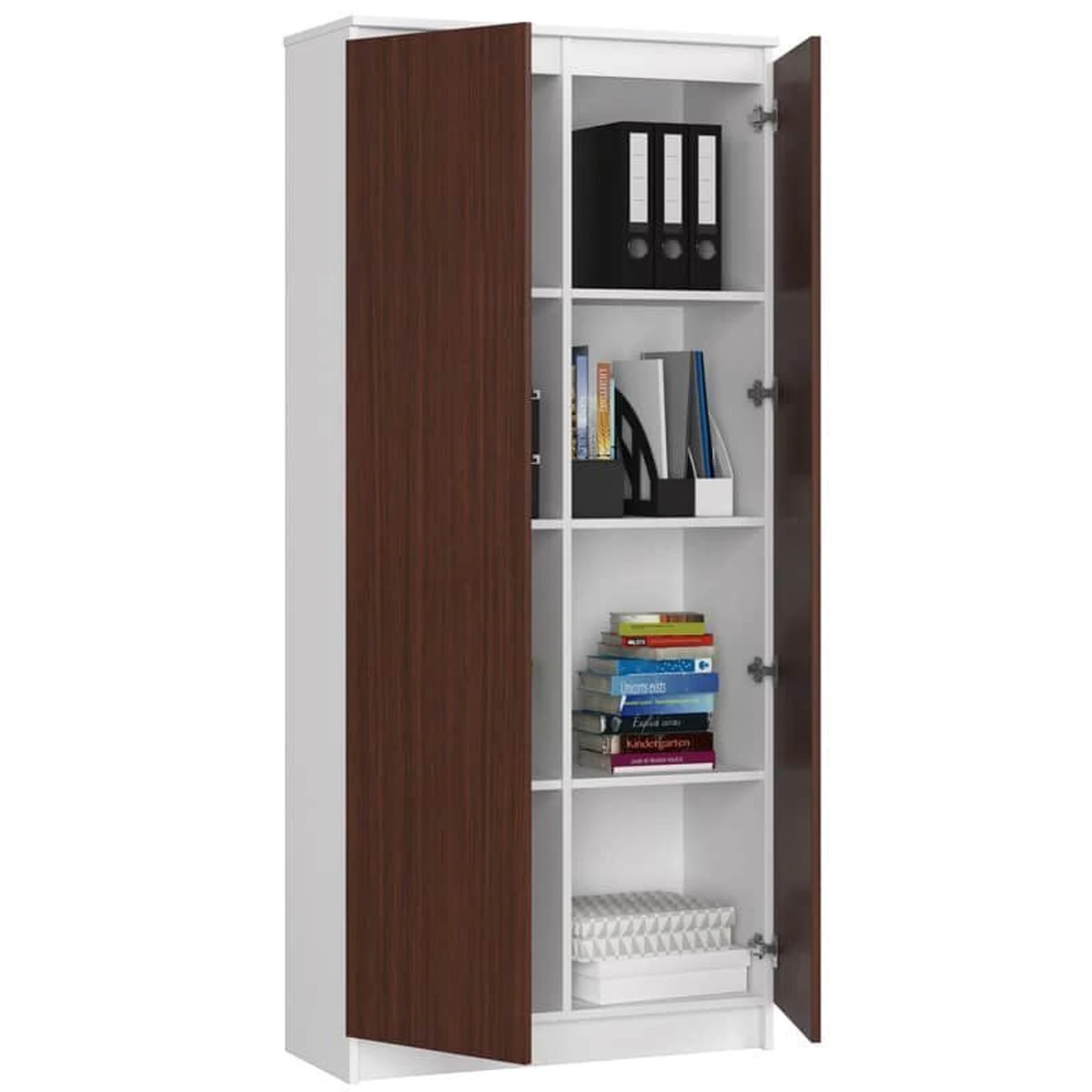Aprašymas buvo automatiškai išverstas, gali pasitaikyti klaidų. Biuro knygų spinta R 80 cm CLP versijoje su dvejomis durimis yra spalvota su baltomis sienomis ir vidinėmis lentynomis bei venge spalvos durimis. Knygų spinta turi labai universalų charakterį, todėl tinka ne tik gyvenamuosiuose ar miegamuosiuose kambariuose, bet ir patalpose, pavyzdžiui, biuruose. Šio tipo spintelės yra idealus sprendimas knygoms, dokumentams ir kitiems reguliariai naudojamiems gaminiams laikyti. Spinta labai patogi naudoti ir derinama su kitais, tamsiai rudos spalvos spalvos interjero dizaino elementais. Pagrindiniai CLP biuro lentynų parametrai yra šie: - aukšta kokybė, nes naudojama 16 mm pločio laminuota plokštė, atspari trinčiai (Kronospan medžiagos) ir kraštai padengti ABS briauna, - 8 lentynos, pasižyminčios dideliu atsparumu sunkiam spintelių turiniui, - savaime surenkamos ant komplektuojamų elementų, - matmenys: plotis 80 cm, aukštis 180 cm, ilgis 35 cm, - matinės varstomos durys, - svoris: 60 kg, - tvirtos kojelės, skirtos stabiliam stovo montavimui ant įvairių paviršių.