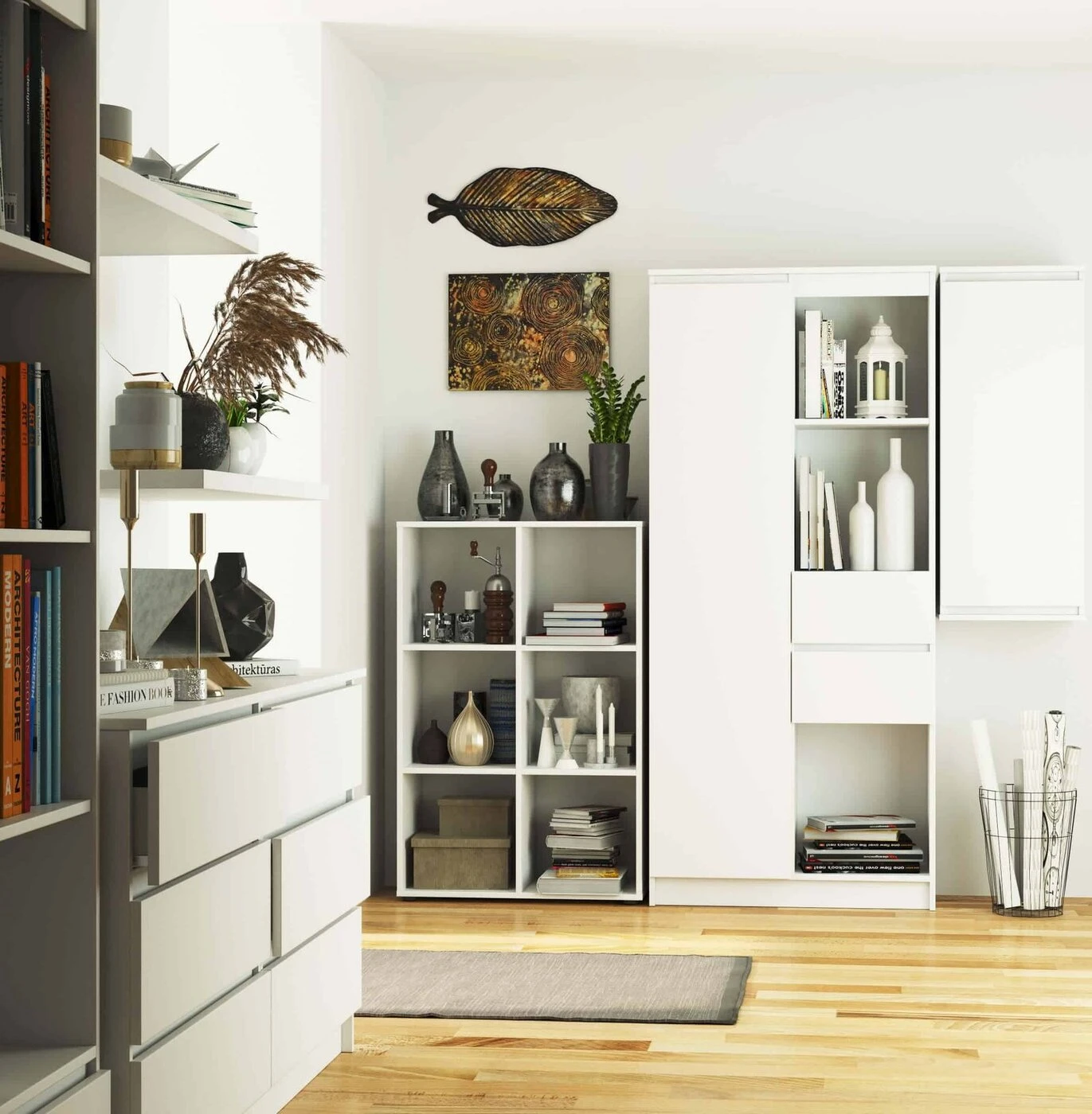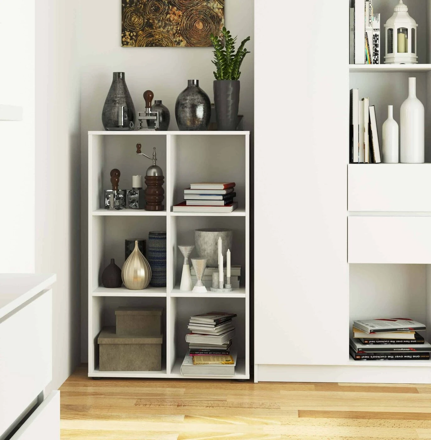 Aprašymas buvo automatiškai išverstas, gali pasitaikyti klaidų. QUAD 6 lentynų knygų spinta turi daug privalumų, į kuriuos verta atkreipti dėmesį: - talpa: turi 6 lentynas, kurias galima laisvai išdėstyti, - ilgaamžiškumas: baldai pagamintas iš aukštos kokybės laminuotos plokštės, atsparios dilimui, - atsparumas: stelažo kraštai padengti ABS apvadu, kuris užtikrina aukštą apsaugą nuo pažeidimų, - lengvas surinkimas : baldą reikia surinkti savarankiškai, o tai nesudėtinga - prie užsakymo pridedama instrukcija, - elegantiška išvaizda: knygų spinta pasižymi paprasta forma, yra stilingos, baltos spalvos spalvos, - universalumas: baldai tiks įvairiose patalpose, namuose ir biure, - patraukli kaina, - 24 mėnesių garantija.