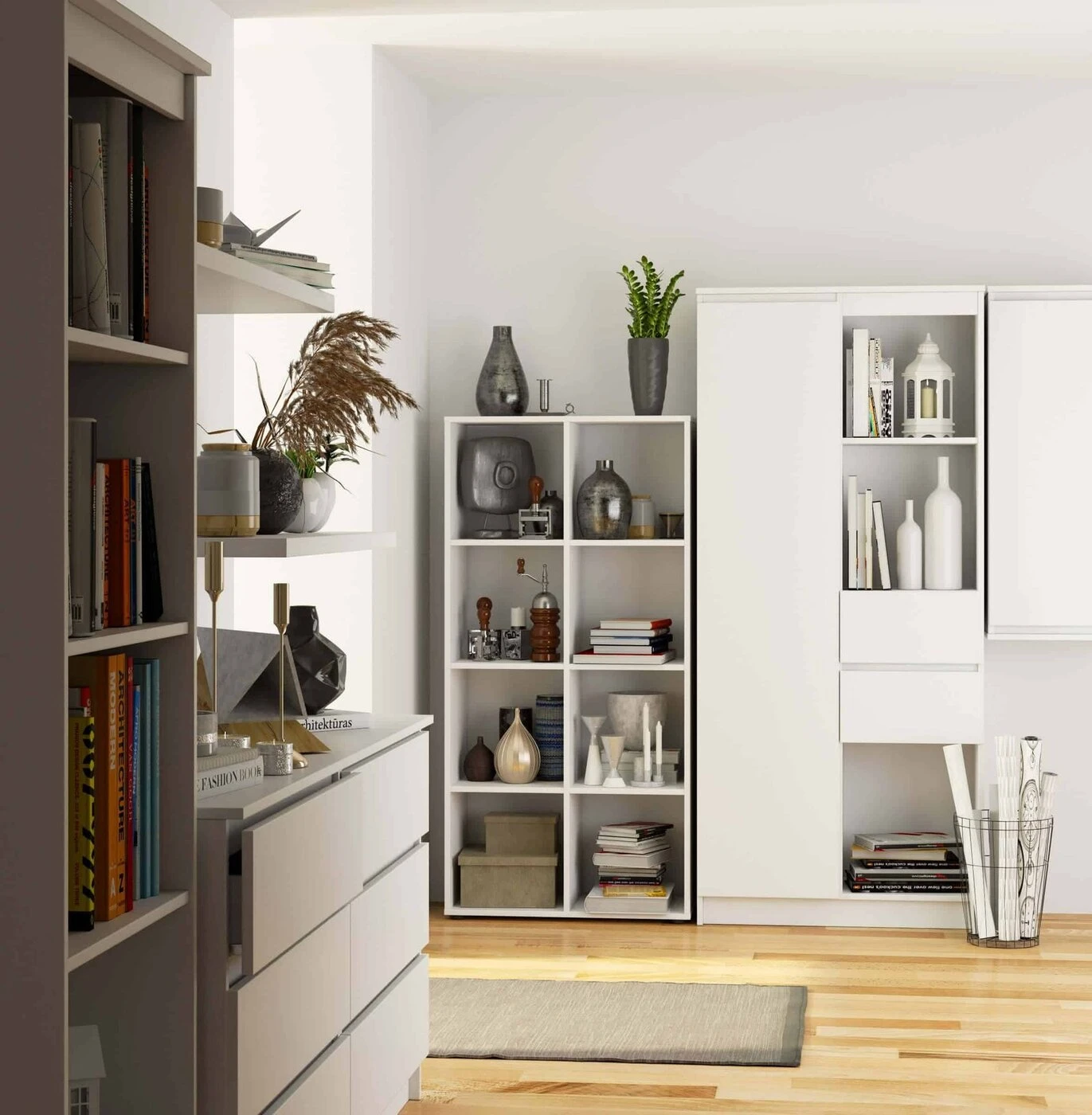 Aprašymas buvo automatiškai išverstas, gali pasitaikyti klaidų. QUAD 8 lentynų knygų lentyna turi daug privalumų, į kuriuos verta atkreipti dėmesį: - talpa: joje yra 8 lentynos, kurias galima laisvai išdėstyti, - ilgaamžiškumas: baldai pagamintas iš aukštos kokybės laminuotos plokštės, atsparios dilimui, - atsparumas: stelažo kraštai padengti ABS apvadu, kuris užtikrina aukštą apsaugą nuo pažeidimų, - lengvas surinkimas : baldą reikia surinkti savarankiškai, o tai nesudėtinga - prie užsakymo pridedama instrukcija, - elegantiška išvaizda: knygų spinta pasižymi paprasta forma, yra stilingos, baltos spalvos spalvos, - universalumas: baldai tiks įvairiose patalpose, namuose ir biure, - patraukli kaina, - 24 mėnesių garantija.