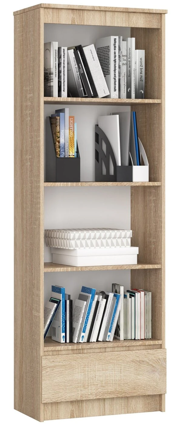 Aprašymas buvo automatiškai išverstas, gali pasitaikyti klaidų. Knygų spinta R 60 CLP 1 yra labai patrauklios išvaizdos modelis. Jis pagamintas iš aukščiausios kokybės medžiagos, efektingos sonomos ąžuolo spalvos. Šviesaus ąžuolo spalva itin patraukli. Natūralus medžio raštas su originaliu grūdėtumu išskiria baldą ir suteikia jam originalumo. Sonomos ąžuolo spalvos knygų spinta skirta tiek didesnėms, tiek mažesnėms erdvėms. Dėl to, kad baldas yra siauras, jis neužima daug vietos. Dėl šios priežasties jis puikiai tinka studijoms ir biurams su kuklesnėmis būsto galimybėmis. Knygų spinta gali atlikti įvairias funkcijas. Puikiai tinka laikyti segtuvus darbe ir knygas namų bibliotekoje arba kolekcininkų vitrinas svetainėje. „Sonoma“ ąžuolo knygų spinta yra labai tvirtas ir patvarus gaminys. Jam būdingas didelis darbo tikslumas, elegantiška išvaizda ir praktiški dizaino sprendimai. Lentynų montavimas gali būti atliekamas pagal Jūsų poreikius. Tai baldas, kuris puikiai tiks bet kokiam išdėstymui. - Knygų lentyna iš dilimui atsparios laminuotos plokštės - Lentynos gali būti surenkamos pagal jūsų konfigūraciją, 3 montavimas skylės lentynos aukštyje - Stalčius juda ant metalinių ritinėlių kreiptuvų su prailginimo bloku - Kraštai padengti ABS briauna, užtikrinančia aukštą apsaugą nuo pažeidimų – Savarankiškai surenkamas stovas – Pristatyme pateikiamas vadovas – 24 mėnesių garantija