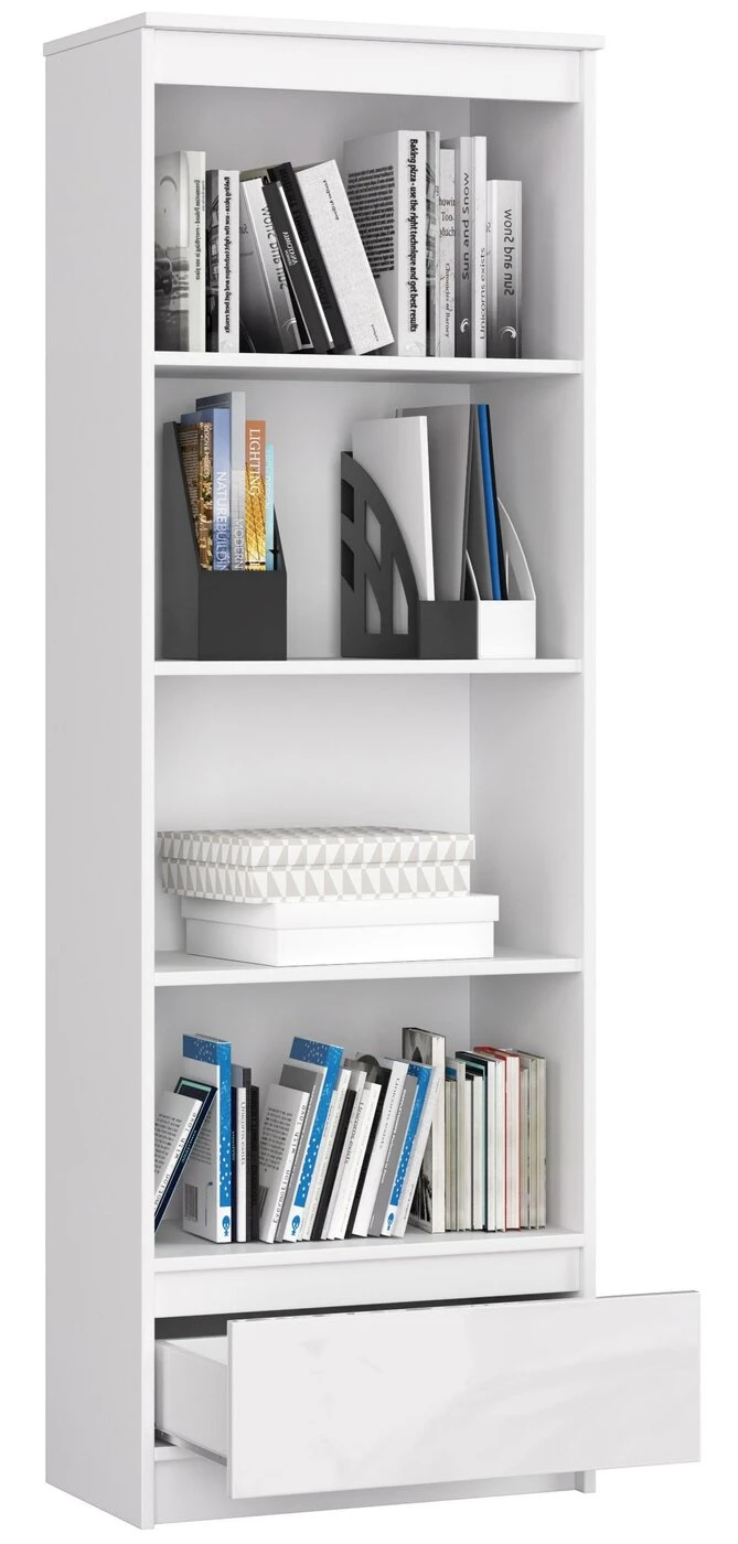 Aprašymas buvo automatiškai išverstas, gali pasitaikyti klaidų.,, baltos spalvos spalvos knygų spinta su keturiomis lentynomis ir stalčiumi – tai baldas, kuriame dera funkcionalumas ir elegancija. Knygų spinta įsikomponuos į modernaus stiliaus svetainę, biurą ir biuro patalpas įmonėje. Erdvios baldų lentynos gali būti naudojamos priklausomai nuo įvairių dalykų paklausos, pavyzdžiui, knygoms, segtuvams su dokumentais ar nuotraukų albumams. Jei knygų spinta pastatyta svetainėje, lentynose gali būti interjerą puošiančių elementų, tokių kaip žvakidės ar figūrėlės. Erdvus ir lengvai stumdomas stalčius, esantis apatinėje baldo dalyje, gali būti išdėstytas bet kaip. Stelažo korpusas pagamintas iš laminuotos plokštės, kuri yra labai atspari trinčiai ir mechaniniams pažeidimams. Baldo kraštai gamintojo padengti estetišku ir patvariu ABS apvadu. Stalčiaus priekis, pagamintas iš MDF plokštės, turi blizgančią apdailą, kuri kartu su matiniu baldo korpusu atrodo labai įspūdingai. - Knygų lentyna pagaminta iš 16 mm Kronospan laminuotos plokštės, atspari trinčiai - Priekiniai skydai iš akrilu dengta mdf plokštė - aukščiausios kokybės blizgesys rinkoje. - Lentynos gali būti surinktos pagal jų konfigūraciją, 3 tvirtinimo angos lentynos aukštyje - Stalčius juda ant metalinių ritinėlių kreiptuvų su ištraukiamu užraktu - Kraštai padengti ABS briauna, kad būtų apsaugota nuo pažeidimų - Savarankiškai surenkama knygų lentyna - Pristatomas vadovas - Garantija 24 mėn. span>
