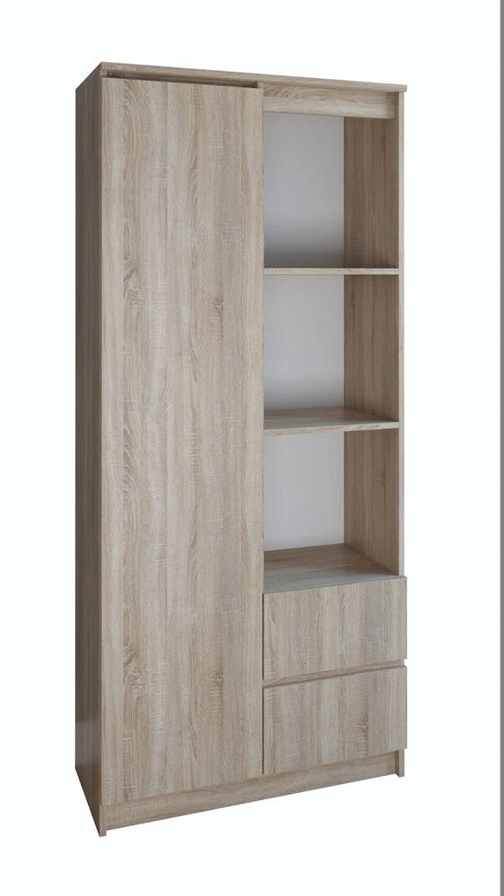 pastatoma, 1-ų durų, 2 stalčių ir 3-ų atvirų skyrių lentyna;lentyna pagaminta iš 16 mm storio laminuotos medžio drožlių plokštės su ABS kraštų apdaila;lentynos išmatavimai: plotis - 80 cm, gylis - 35 cm, aukštis - 180 cm;vidinis išplanavimas pavaizduotas 2 nuotraukoje;lentynos spalva: korpusas - sonoma ąžuolas (matinė), fadasas - sonoma ąžuolas(matinė);ritininiai bėgeliai apsaugos stalčius nuo iškritimo;įbrėžimams ir drėgmei atsparus paviršius;tvirta ir stabili konstrukcija;