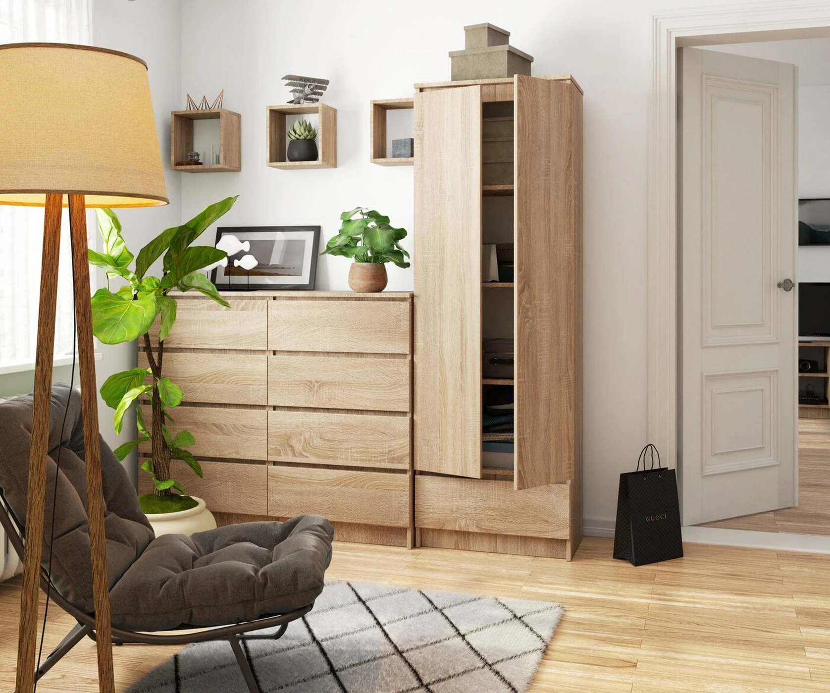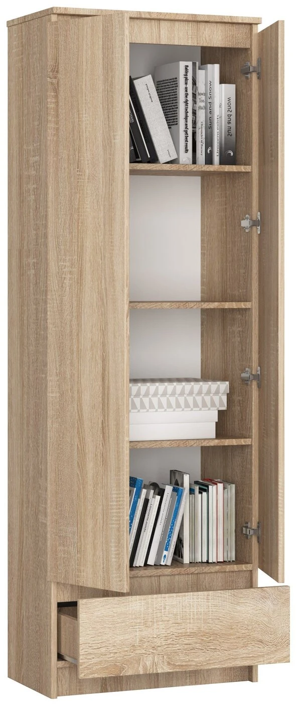 Aprašymas buvo automatiškai išverstas, gali pasitaikyti klaidų. BIURO LENTELĖS SPINTA R 60 cm Sonoma ąžuolo spalvos CLP yra įdomus kompaktiško baldo pasiūlymas, kurį galima naudoti, be kita ko. dokumentų ar kitų biure naudingų daiktų laikymui. Tačiau galime jį naudoti ir gyvenamosioms patalpoms įrengti, kambariuose, įrengtuose nuotoliniam darbui ar tarnaujantiems kaip sandėliavimo patalpos. Stovas pagamintas iš 16 mm laminuotos plokštės, kurios kraštuose papildomai yra patvari, trinčiai atspari ABS fanera. Knygų lentynos matmenys: 60 cm (plotis), 180 cm (aukštis), 35 cm (gylis). Jame yra: pakreipiamos, pilnos dvigubos durelės, stalčius 30,5 cm (gylis ), 51 cm (plotis), su integruotais ritininiais kreiptuvais su apsauginiu užraktu, keturios lentynos, iš kurių tris galima montuoti pagal individualius poreikius. Baldai yra matinio paviršiaus. Stovas skirtas montuoti savarankiškai. Svoris 38 kg. Komplekte yra instrukcijos. Produktui taikoma 24 mėnesių garantija.