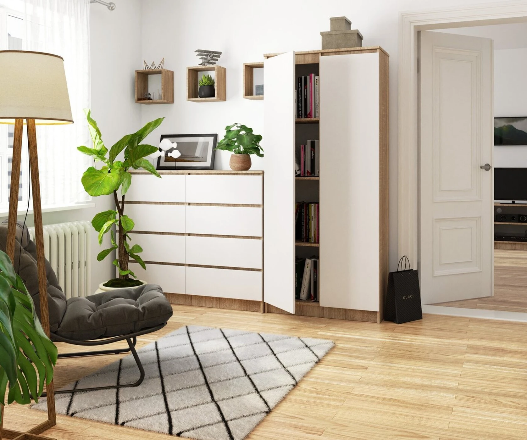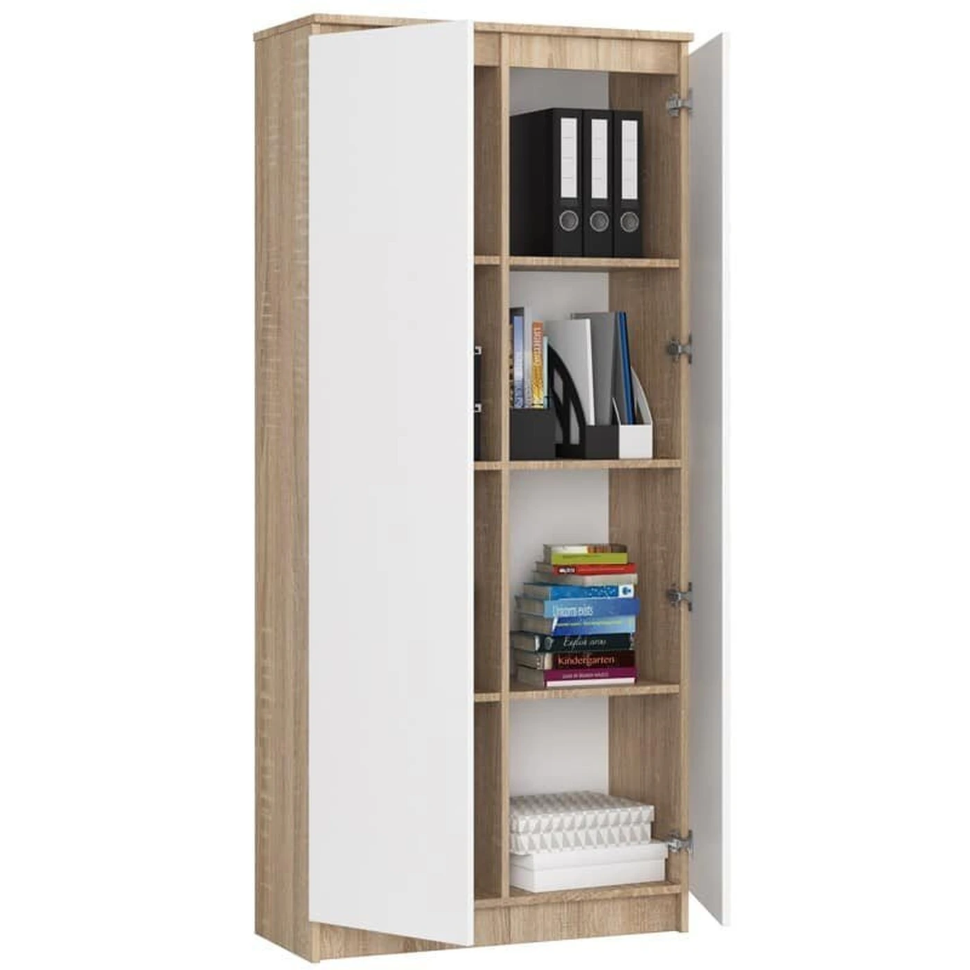 Aprašymas buvo automatiškai išverstas, gali pasitaikyti klaidų. Spintelės formos biuro knygų lentyna R 80 cm – tai CLP klasės sistemos baldas, pasižymintis itin moderniu stiliumi ir solidžiu apdirbimu. Tai savaime surenkamas baldas, puikiai tinkantis tokiose patalpose kaip svetainė ar biuras. Knygų spinta pagaminta iš aukštos kokybės laminuotos medienos ir nulakuota matinėmis, švelniomis, tamsiai rudos spalvos ir sonoma spalvomis. Dėl šios priežasties šio tipo biuro lentynos pritaikomos prie kitų CLP sistemos baldų (pvz., stalų ar komodų). CLP biuro lentynos, tamsiai rudos spalvos / sonoma spalvos turi standartinius šios serijos baldų parametrus: - 2 visiškai varstomos venge spalvos durys ir 8 lentynos sonomos spalvos, - matmenys 80x180x35 cm (plotis x aukštis x ilgis), - svoris: 60 kg, - 16 mm storio laminuotos plokštės su papildoma ABS lukštu naudojimas biuro lentynų kraštuose, - didelis atsparumas dilimui, nes naudojama Kronospan medžiaga, – stabilios lentynos ant bet kokio tipo paviršiaus (įskaitant medines grindis arba keramines plyteles).