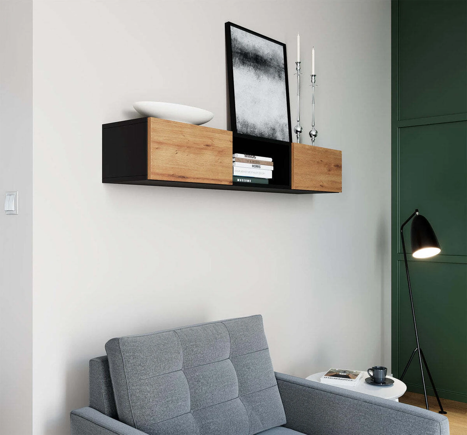 Pakabinama lentyna EL9238 – tai unikalus baldas su įduba centre ir lentyna vitrinai, taip pat su dviem spintelėmis su stumdomomis uždaromomis durelėmis. Kadangi lentyna yra 120 cm pločio ir 25 cm gylio, ji puikiai susidėlios kelias dalis. Praktiški įdėklai paslepia niekučius ir padeda išlaikyti bet kokį kambarį švarų ir tvarkingą. Lentynos pakabinimui reikalingi plėtimosi kamščiai yra komplekte. Baldas pagamintas iš MDF ir dengtas laminatu. Maksimali sieninės spintelės EL9238 apkrova priklauso nuo sienos, ant kurios ji bus tvirtinama, medžiagos.Rinkitės iš dviejų spalvų variantų Lengvas montavimas Visi komponentai Aukštis: 20 cm Gylis: 25 cm Plotis: 120 cm Svoris: 11 kgPlastiko konfigūracija: juoda matinis+amatinis ąžuolas / juodas matinis+juodas matinis Rėmo spalva: juoda Audinys: MDF plokštė Durų skaičius: 2 Lentynų skaičius: 4