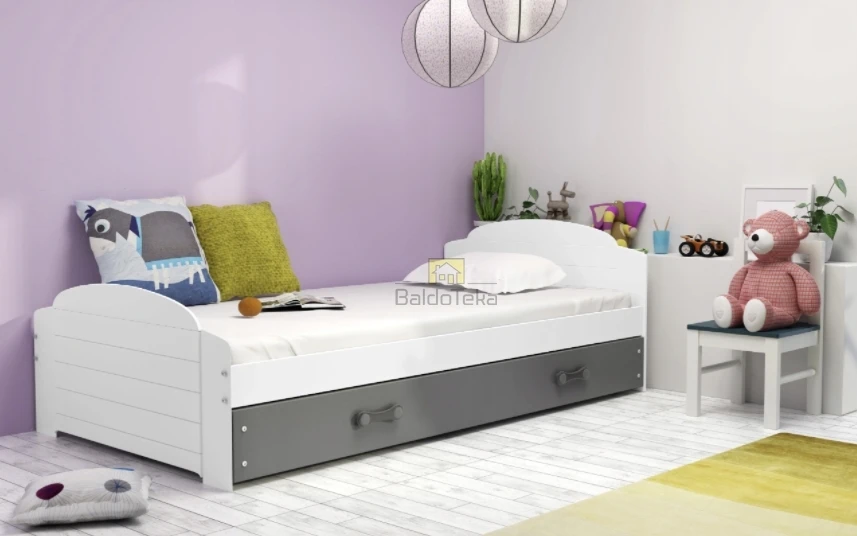 LILI 90*200 (balta/grafit) bms vaikiška lova + čiužinys