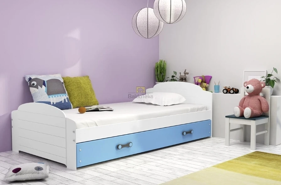 LILI 90*200 (balta/mėlyna) bms vaikiška lova + čiužinys