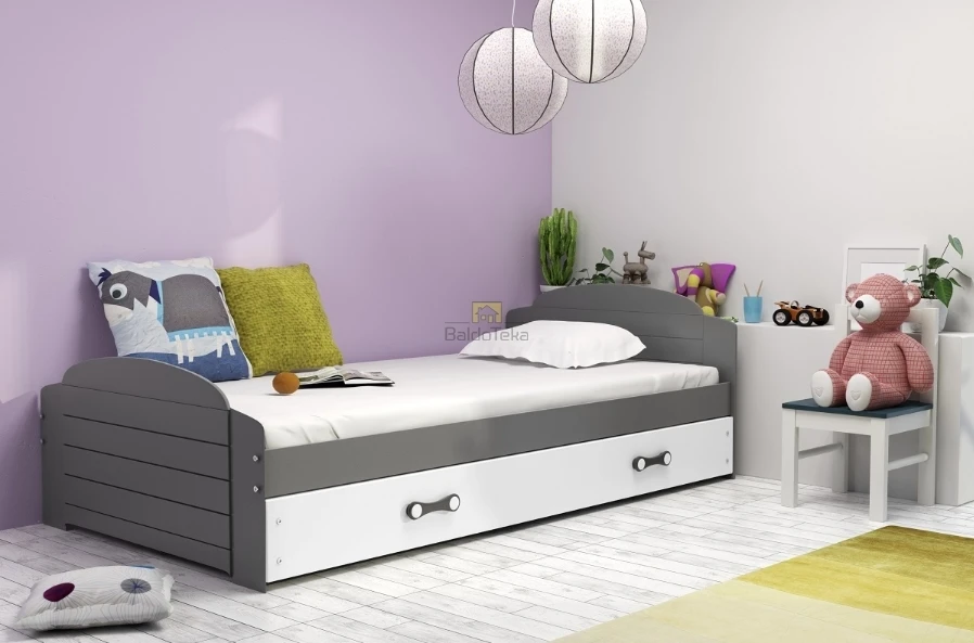 LILI 90*200 (grafit/balta) bms vaikiška lova + čiužinys