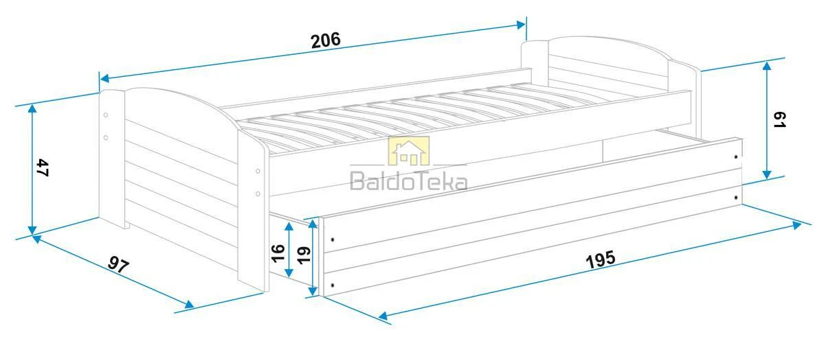 | Pritaikyta čiužiniui | 900 x 2000 mm |