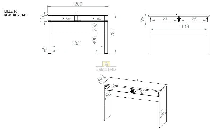 Plotis/Aukštis/Gylis: 120/78/40 cm.