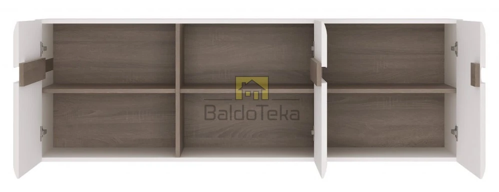Spalva: balta matinė/balta blizgi; dekoro detalės – triufelinis ąžuolas.Visi LINATE baldai >>>