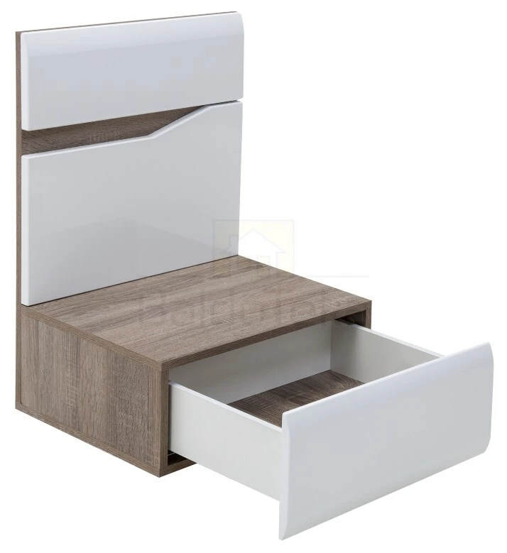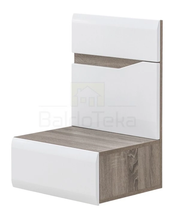 LMDP + MDF. Spalva – triufelinis ąžuolas sonoma + balta blizgi.Spintelė tvirtinama prie sienos.Visi LIONEL badai >>>