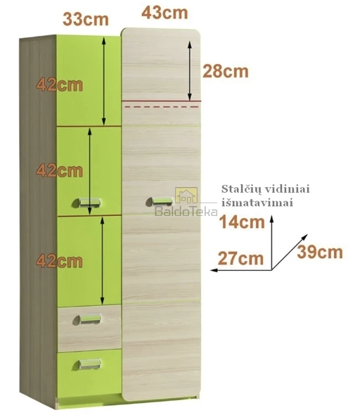 Plotis/Aukštis/Gylis: 80/188/52 cm.