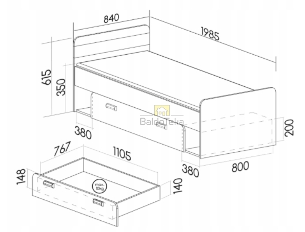 Lovos rėmo Plotis/Ilgis/Aukštis: 84/198,5/61,5 cm.
