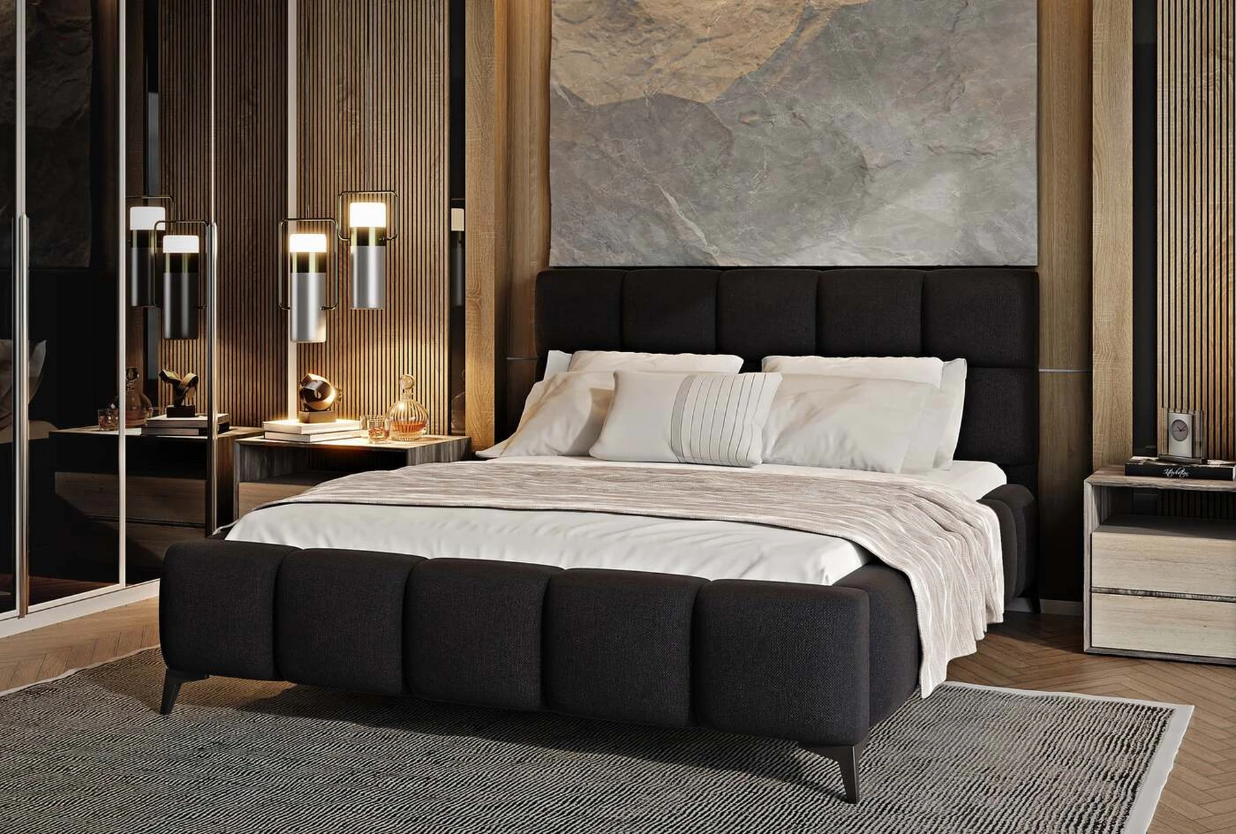Lova EL4415 yra modernaus dizaino ir žavingo stiliaus derinys, suteikiantis elegancijos kiekvienam miegamajam. Galvos atrama turi minkšto putplasčio užpildą, padengtą aukštos kokybės apmušalais. Skiautinė, kuri puošia lovą EL4415, suteikia stiliaus ir charakterio bei suteikia modernumo. Baldai gali būti trijų pločių miegamojo paviršiaus: 140, 160, 180 x 200 centimetrų. Taip lengviau priderinti lovą prie sąlygų bute. Net 13,5 centimetro ilgio juodos plieninės kojelės suteikia lovai plūduriuojančios virš žemės įspūdį, o tai dar labiau optiškai padidina patalpą, kurioje bus pastatyta EL4415 lova. Be to, balduose taip pat yra patalynės konteineris, kuris yra labai geras sprendimas mažoms erdvėms ir leidžia išlaikyti tvarkingą miegamąjį.