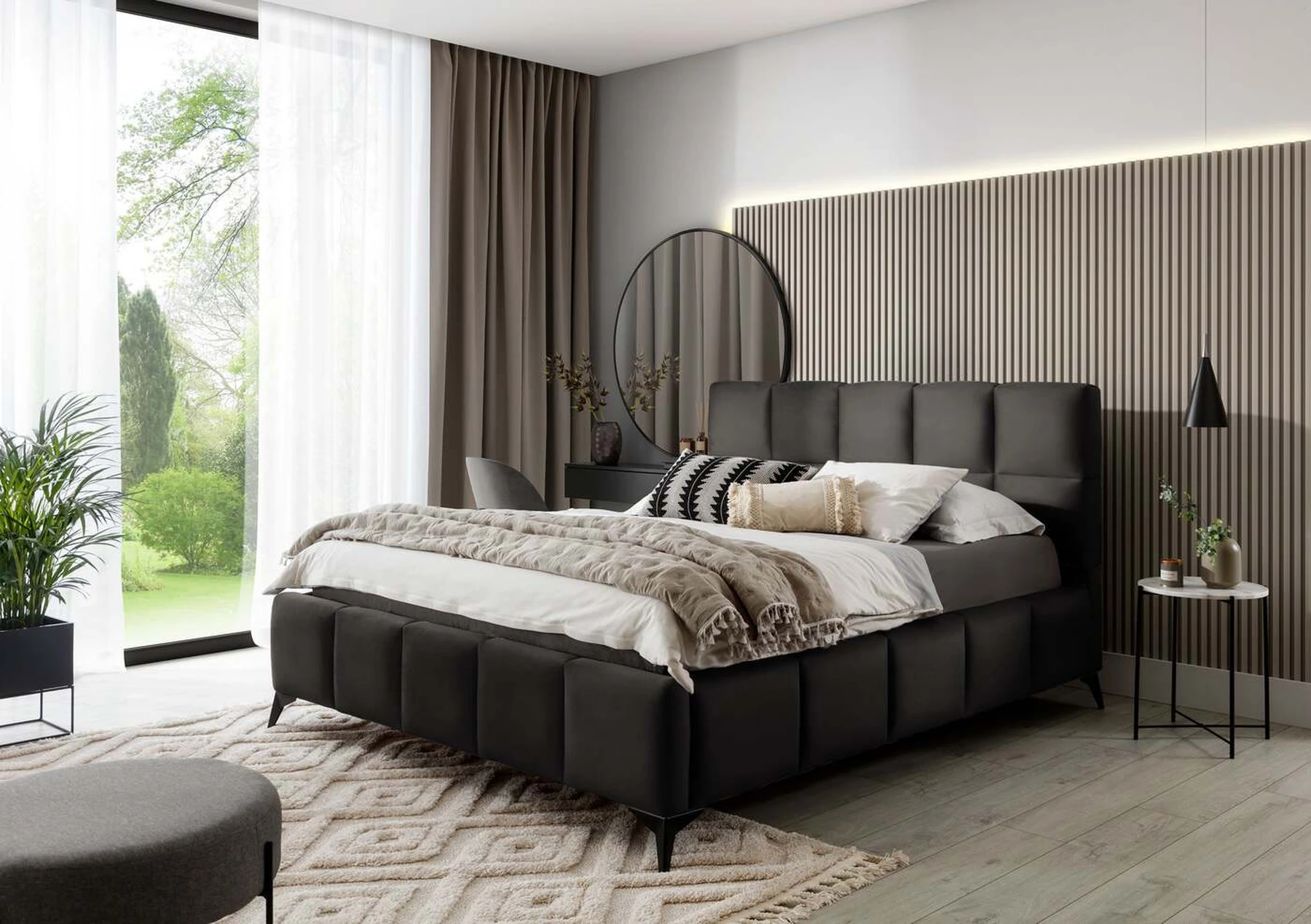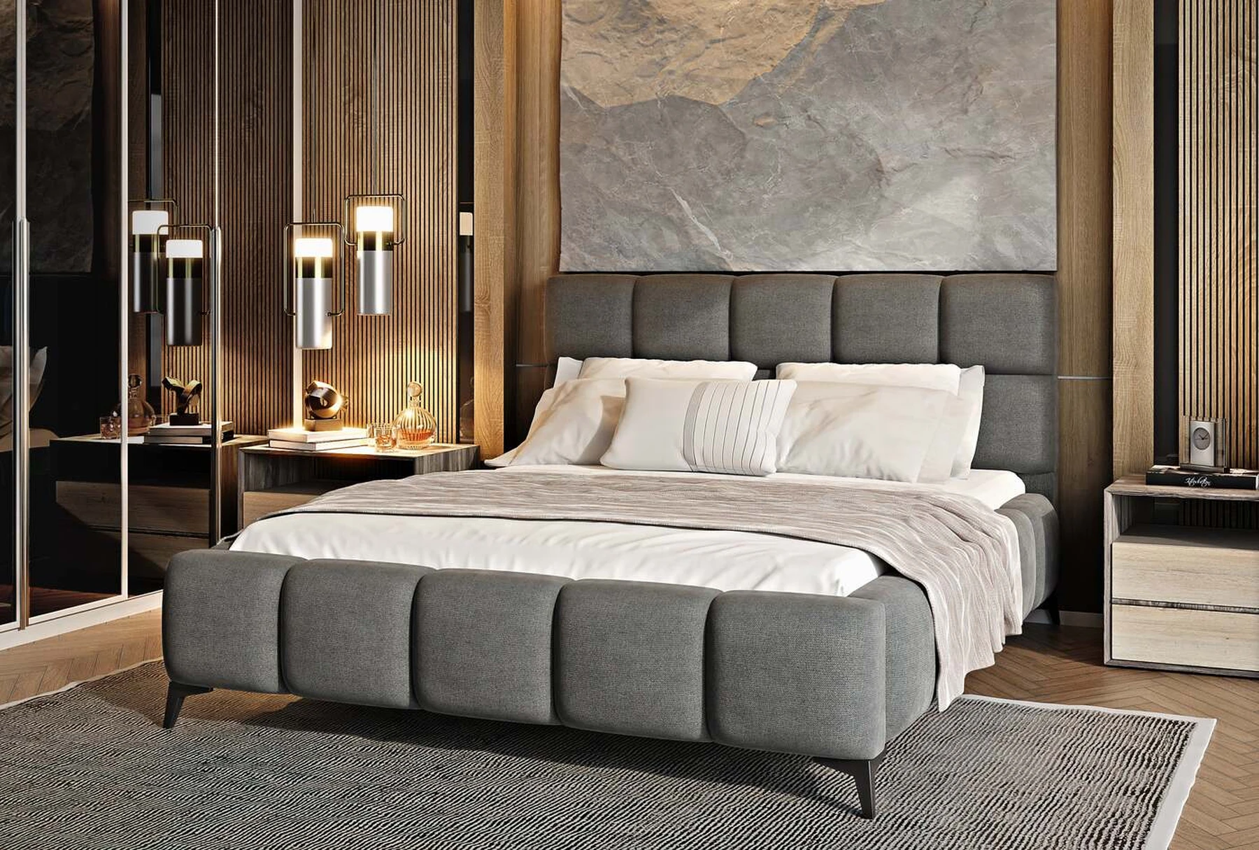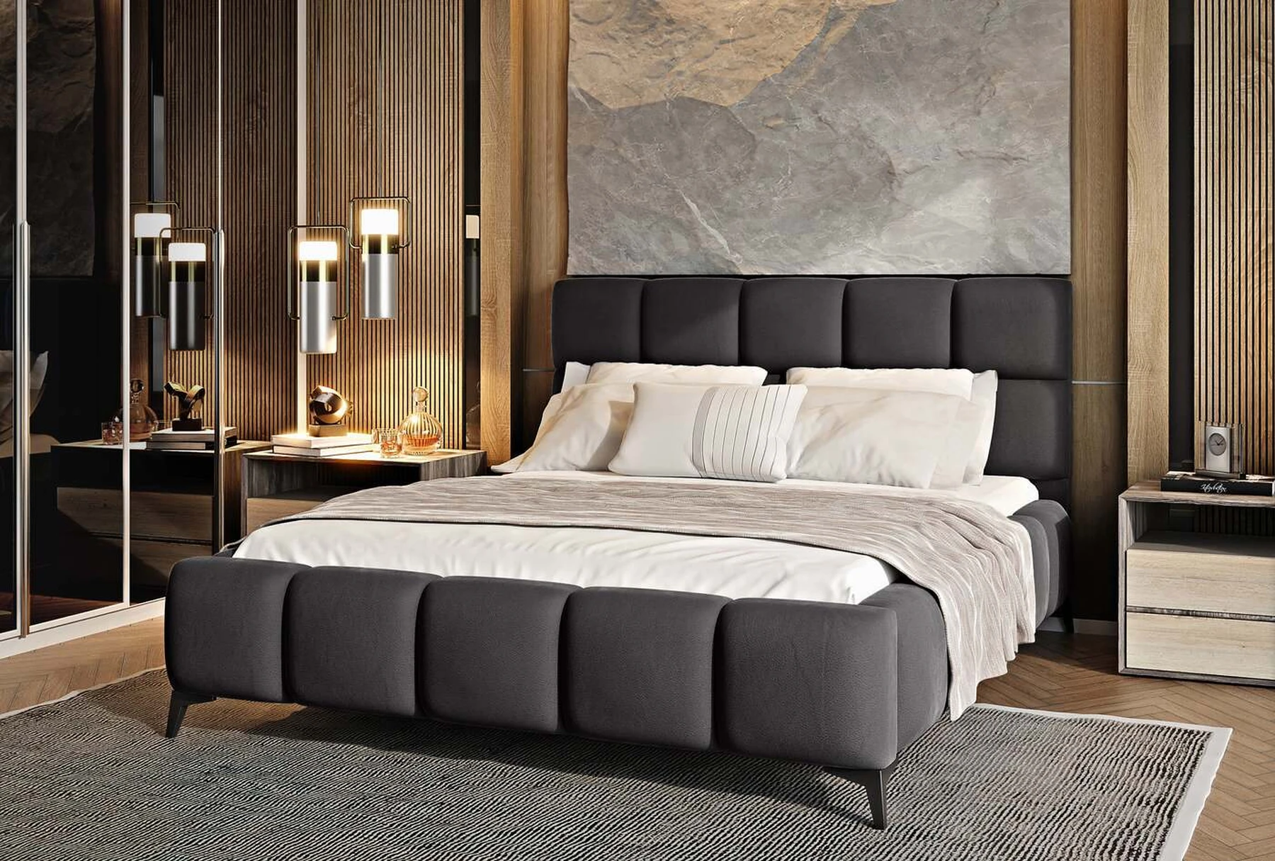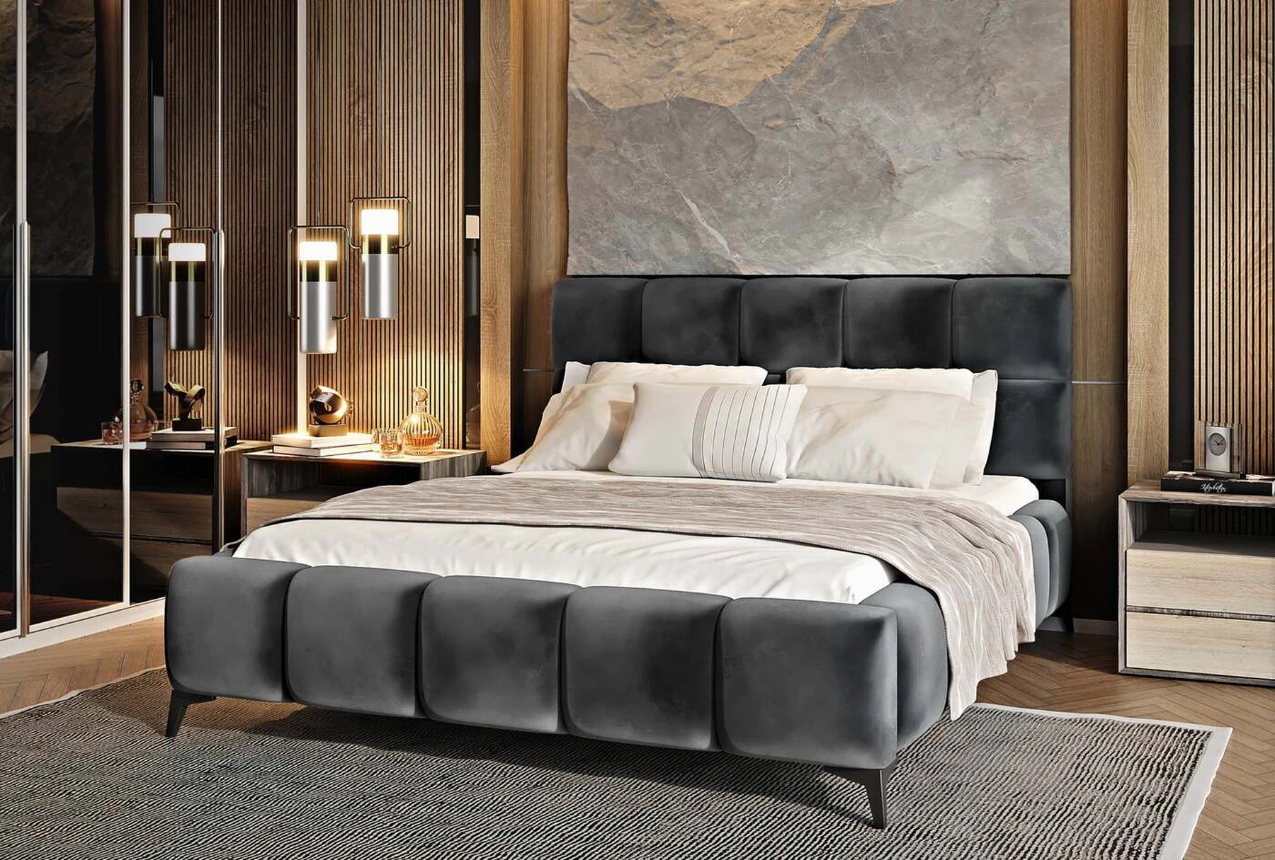 Lova EL4418 yra modernaus dizaino ir žavingo stiliaus derinys, suteikiantis elegancijos kiekvienam miegamajam. Galvos atrama turi minkšto putplasčio užpildą, padengtą aukštos kokybės apmušalais. Skiautinė, kuri puošia lovą EL4418, suteikia stiliaus ir charakterio bei suteikia modernumo. Baldai galimi trijų miegamojo paviršiaus pločių: 140, 160, 180 x 200 centimetrų. Taip lengviau priderinti lovą prie sąlygų bute. Net 13,5 centimetro ilgio juodos plieninės kojelės suteikia lovai plūduriuojančios virš žemės įspūdį, o tai dar labiau optiškai padidina patalpą, kurioje bus pastatyta EL4418 lova. Be to, balduose taip pat yra patalynės konteineris, kuris yra labai geras sprendimas mažoms erdvėms ir leidžia išlaikyti tvarkingą miegamąjį.