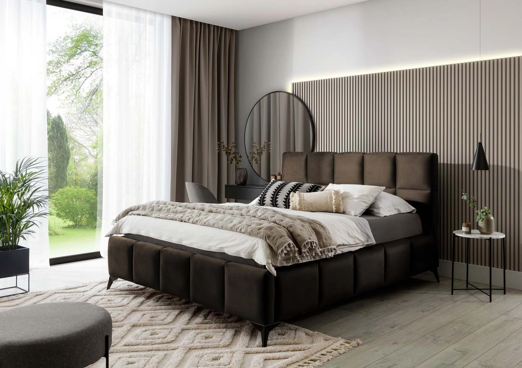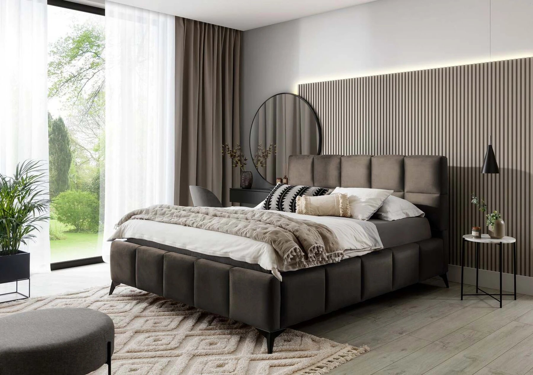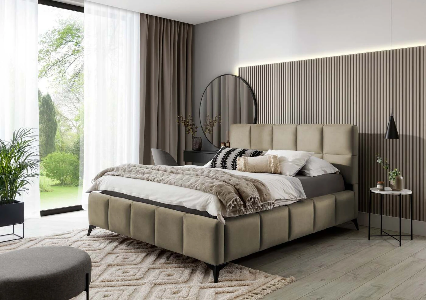 Lova EL4420 – tai modernaus dizaino ir žavingo stiliaus derinys, suteikiantis elegancijos kiekvienam miegamajam. Galvos atrama turi minkšto putplasčio užpildą, padengtą aukštos kokybės apmušalais. Skiautinė, kuri puošia lovą EL4420, suteikia stiliaus ir charakterio bei suteikia modernumo. Baldai yra trijų miegamojo paviršiaus pločių: 140, 160, 180 x 200 centimetrų. Taip lengviau priderinti lovą prie sąlygų bute. Net 13,5 centimetro ilgio juodos plieninės kojelės suteikia lovai plūduriuojančios virš žemės įspūdį, o tai dar labiau optiškai padidina patalpą, kurioje bus pastatyta EL4420 lova. Be to, balduose taip pat yra patalynės konteineris, kuris yra labai geras sprendimas mažoms erdvėms ir leidžia išlaikyti tvarkingą miegamąjį.