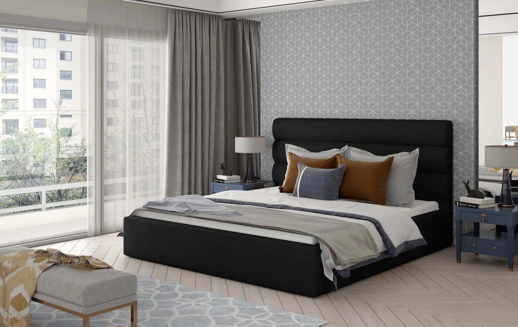 EL5043 – elegantiška, skoninga, taip pat labai patogi klasikinio stiliaus lova, kuri puikiai papildys bet kurio miegamojo interjerą. Baldo paviršių galima rinktis keturiais variantais: 140/ 160/ 180/ 200 x 200 cm, todėl pritaikomas bet kokio dydžio patalpoje. Lova yra tiek su mediniu, tiek su metaliniu rėmu. Pastaruoju atveju gausite patalynės konteinerį, taip pat dujinį keltuvą, kad galėtumėte lengviau pailsėti. Plati spalvų gama suteikia galimybę lovą priderinti prie miegamojo dekoro. Elegantiškam baldų matmeniui įtakos turi ir aukšta galvos atrama, kuri, papuošta siūlėmis, tampa elementu, suteikiančiu visai konstrukcijai didelę dozę elegancijos. EL5043 yra puikus maksimalaus komforto ir įdomaus dizaino derinys. Nesvarbu, ar turite klasikinio ar modernaus stiliaus miegamąjį – EL5043 yra lova, kuri puikiai tiks bet kur ir bet kada.