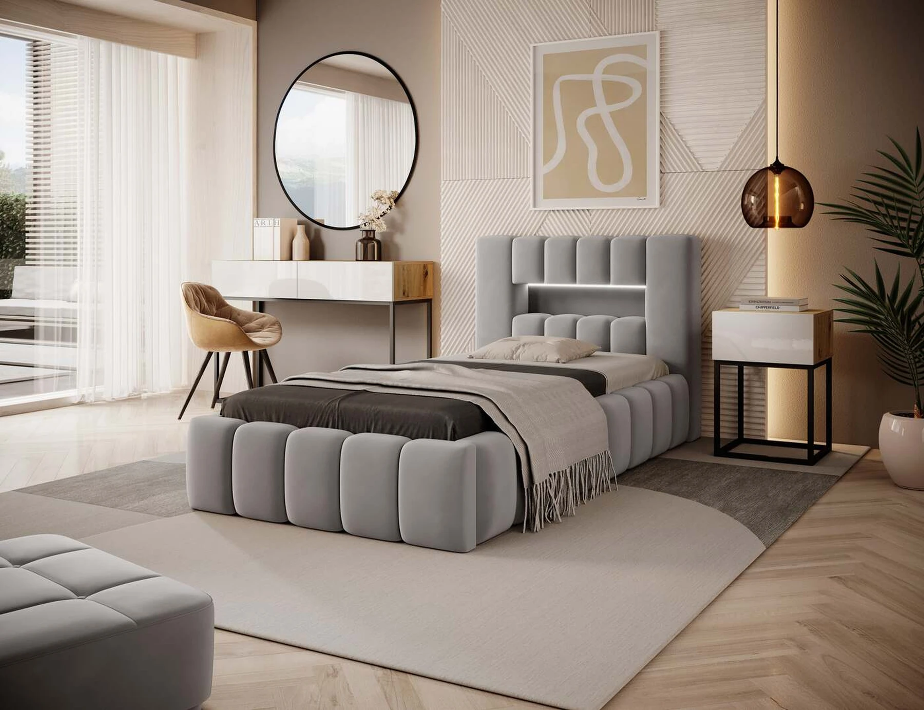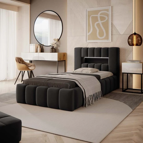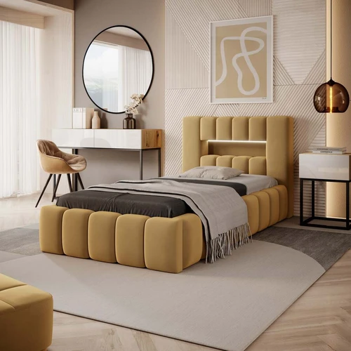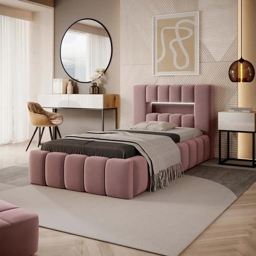 EL7542 yra labai patogi, minkšta ir originali glamour stiliaus lova, kuri žavi savo neregėta forma ir forma. Šie baldai susideda iš korpuso ir medinio rėmo. Taip pat yra konteineris patalynei. 90x200 cm miegamojo paviršiaus dydis suteikia pakankamai vietos atpalaiduojančiam poilsiui. Mūsų lova išsiskiria savo meistriškumu, nes aukšta galvos atrama ir lovos šonai yra pagaminti iš papildomo porolono. Estetinį potyrį sustiprina išilginis, platus skiautinis. Platus spalvų pasirinkimas leidžia lengvai priderinti lovą prie viso kambario. Kitas privalumas – galvos atrama su LED apšvietimu, kurios dėka poilsis bus dar malonesnis. Šiuo atveju modernumas ir modernistinė apdaila eina koja kojon su elegancija, todėl EL7542 visada bus idealus pasirinkimas. Tai tikrai verta turėti.