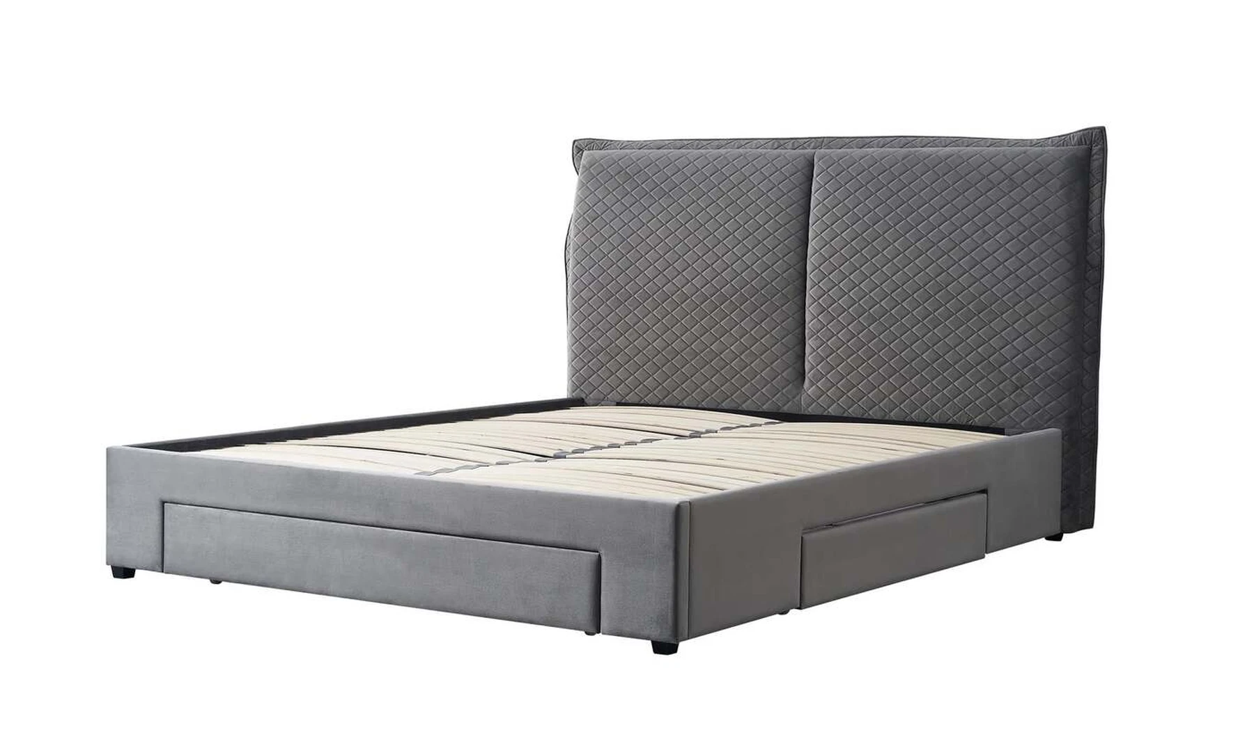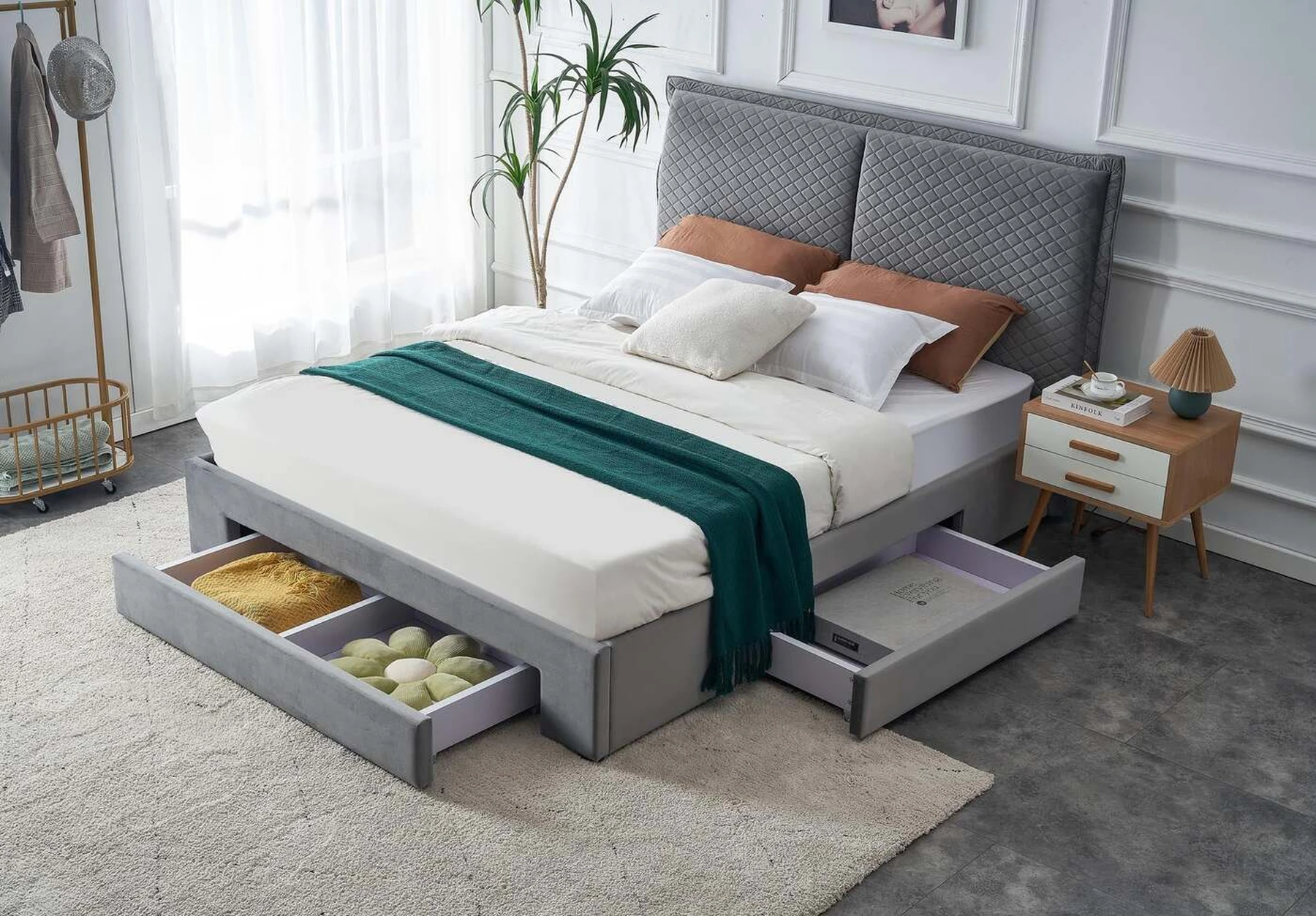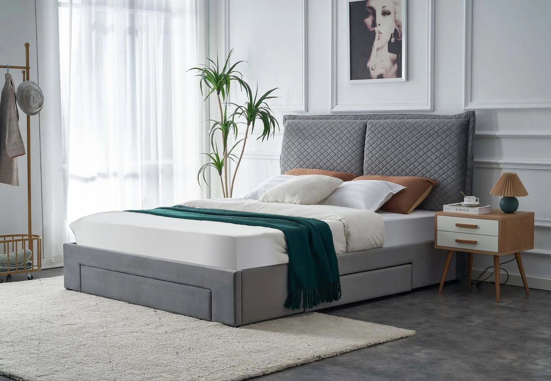 lova su patalynės konteineriu, medžiaga: aksominis audinys / medžio masyvas, spalva: šviesiai pilka, * lova be čiužinio, pasirenkamas čiužinys POLARIS 160 arba SYRIUSZ 160
