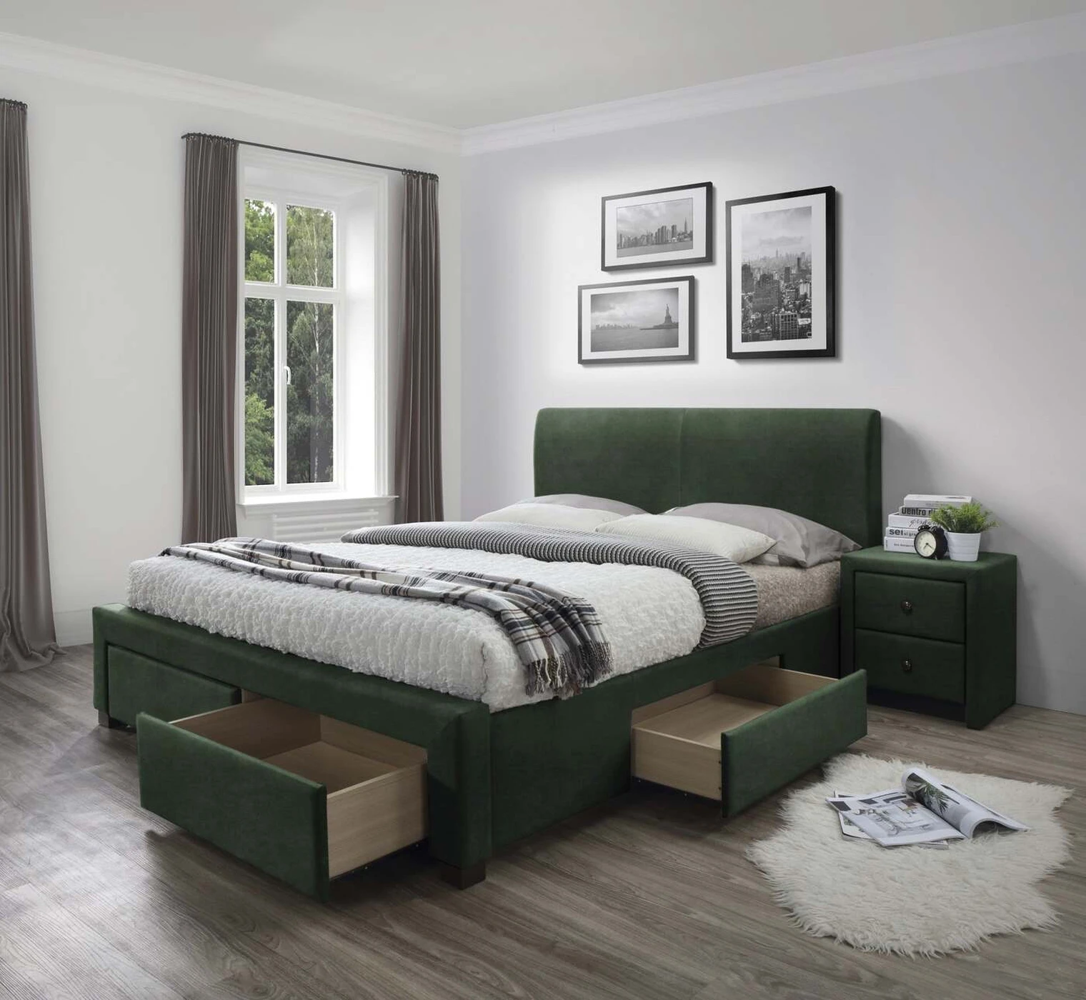 lova su stalčiumi, medžiaga: audinys / gumos masyvas, spalva: tamsiai žalia, * lova be čiužinio, pasirenkamas čiužinys POLARIS 160