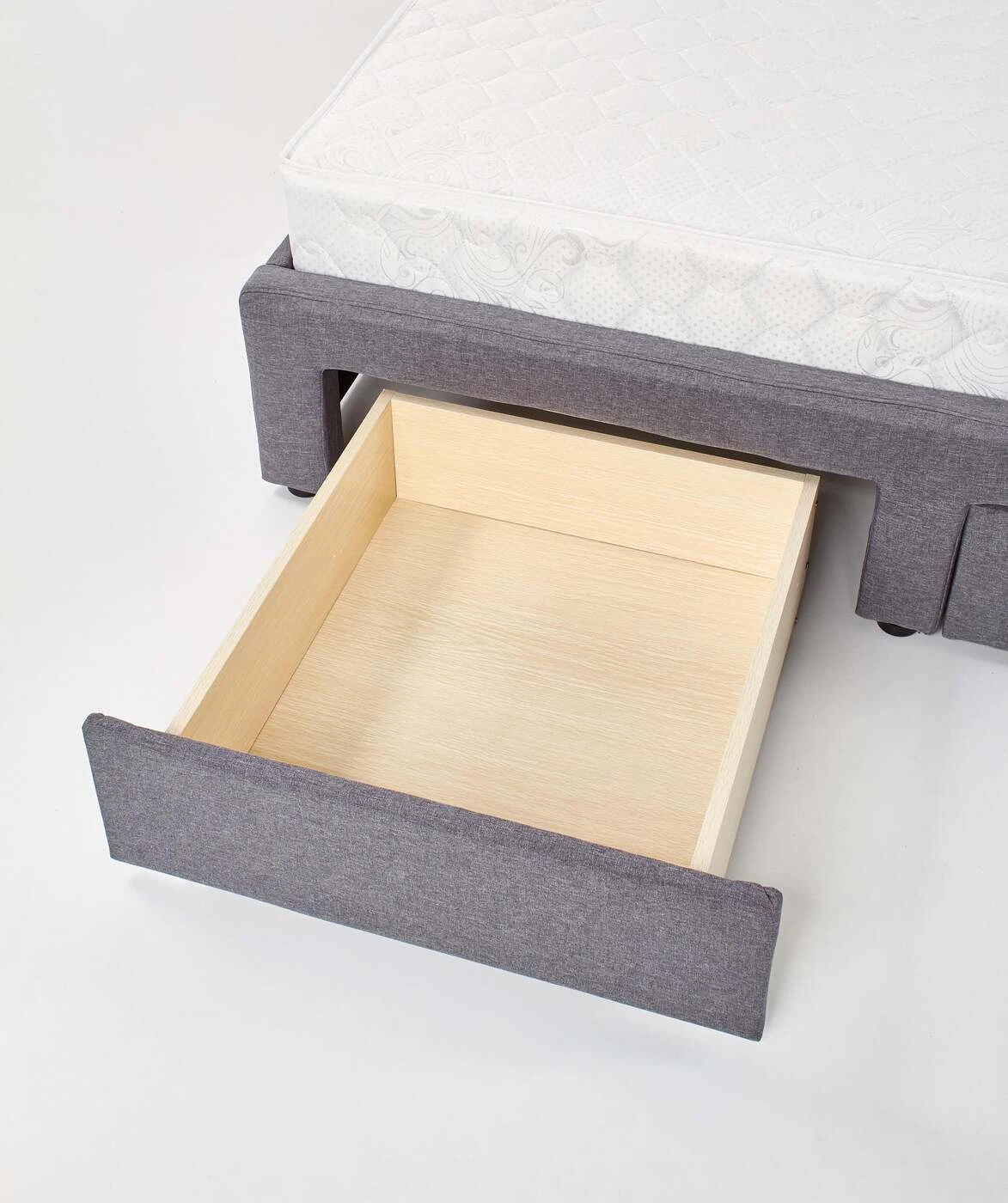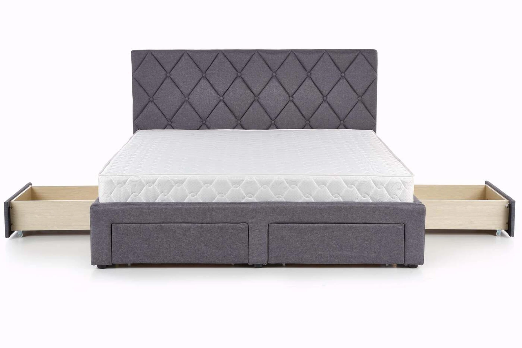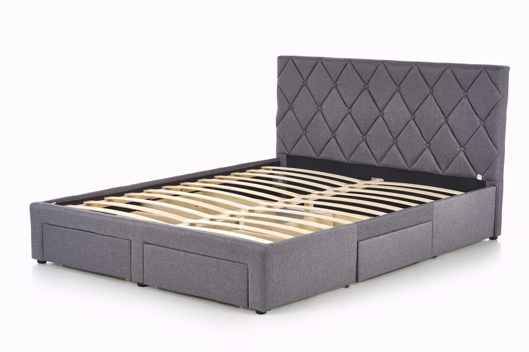 matmenys: 169/218/107 cm, lova su stalčiais, medžiaga: audinys / medžio masyvas, spalva: audinys - pilka, medis - juodas