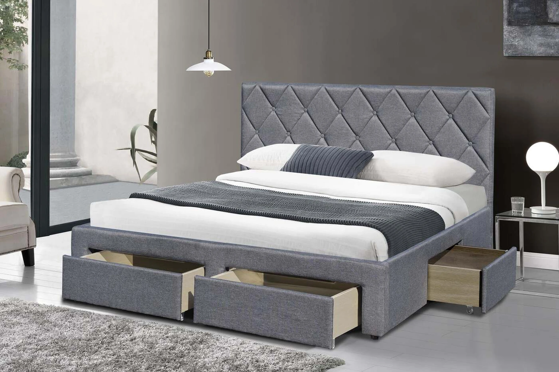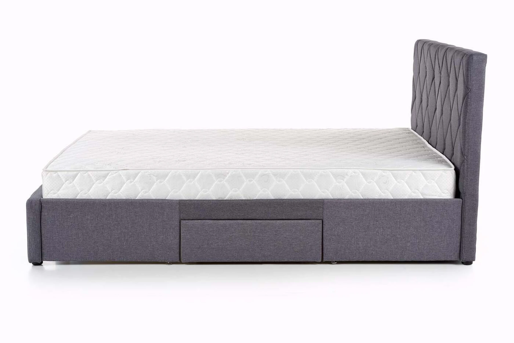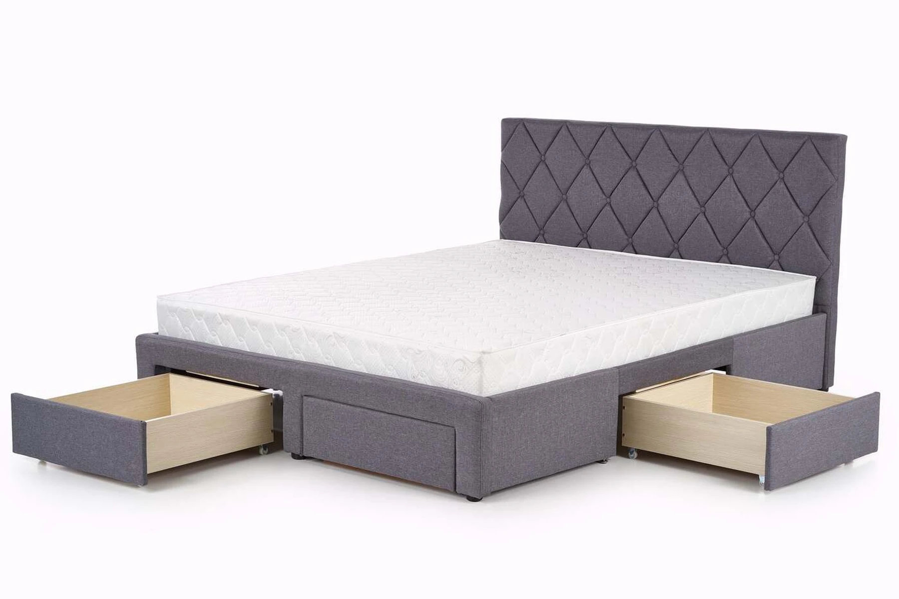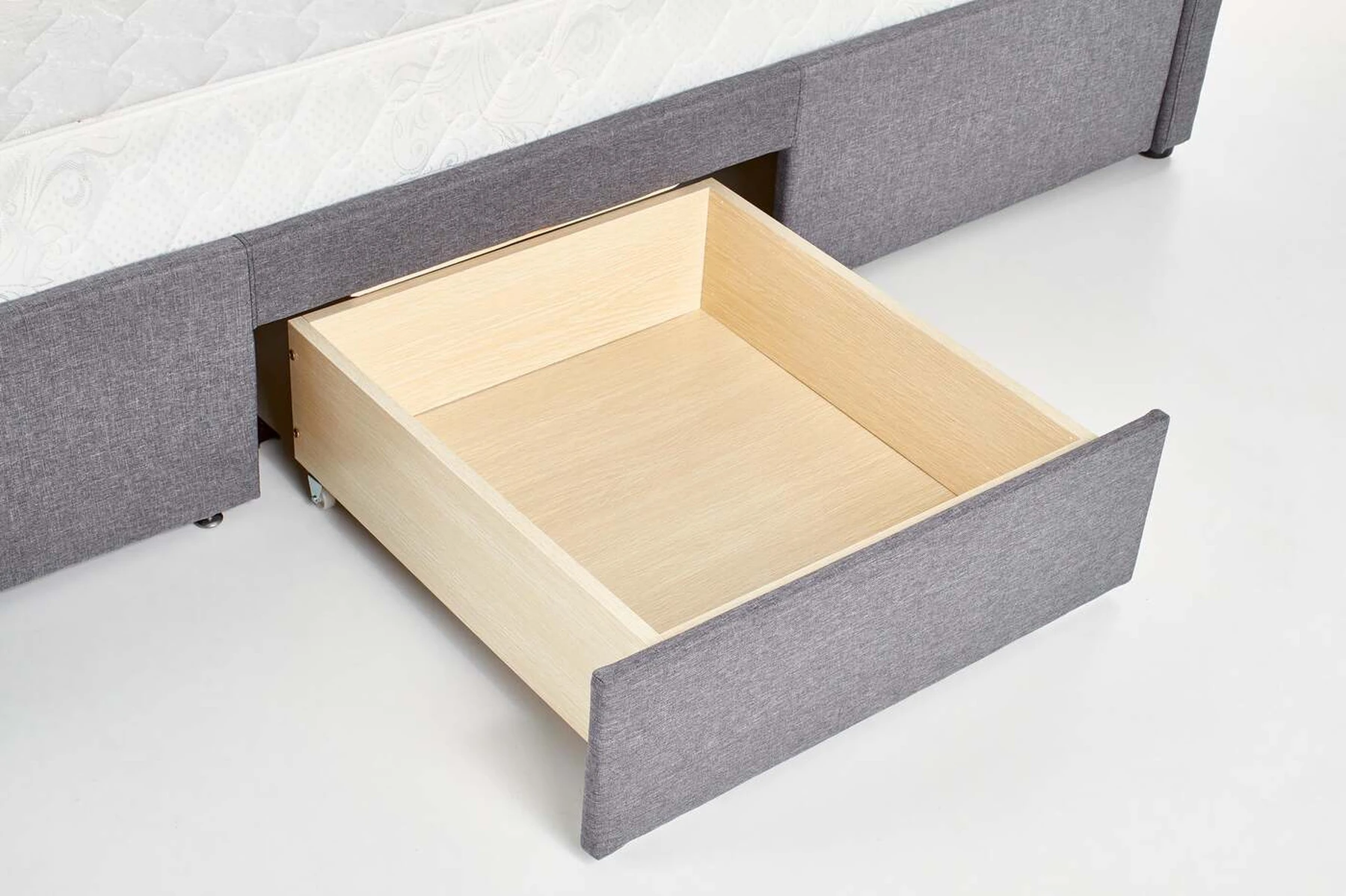 matmenys: 169/218/107 cm, lova su stalčiais, medžiaga: audinys / medžio masyvas, spalva: audinys - pilka, medis - juodas
