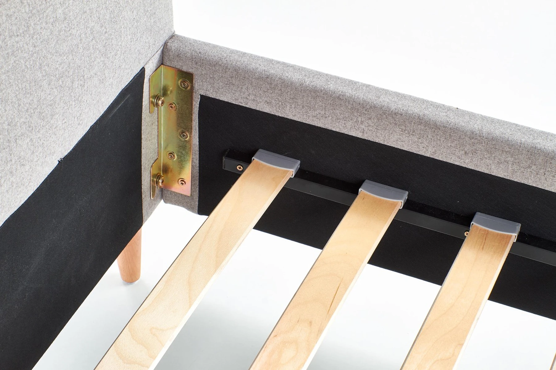 matmenys: 169/217/100 cm, medžiaga: medžio masyvas / audinys, spalva: audinys - pilka, mediena - alksnis