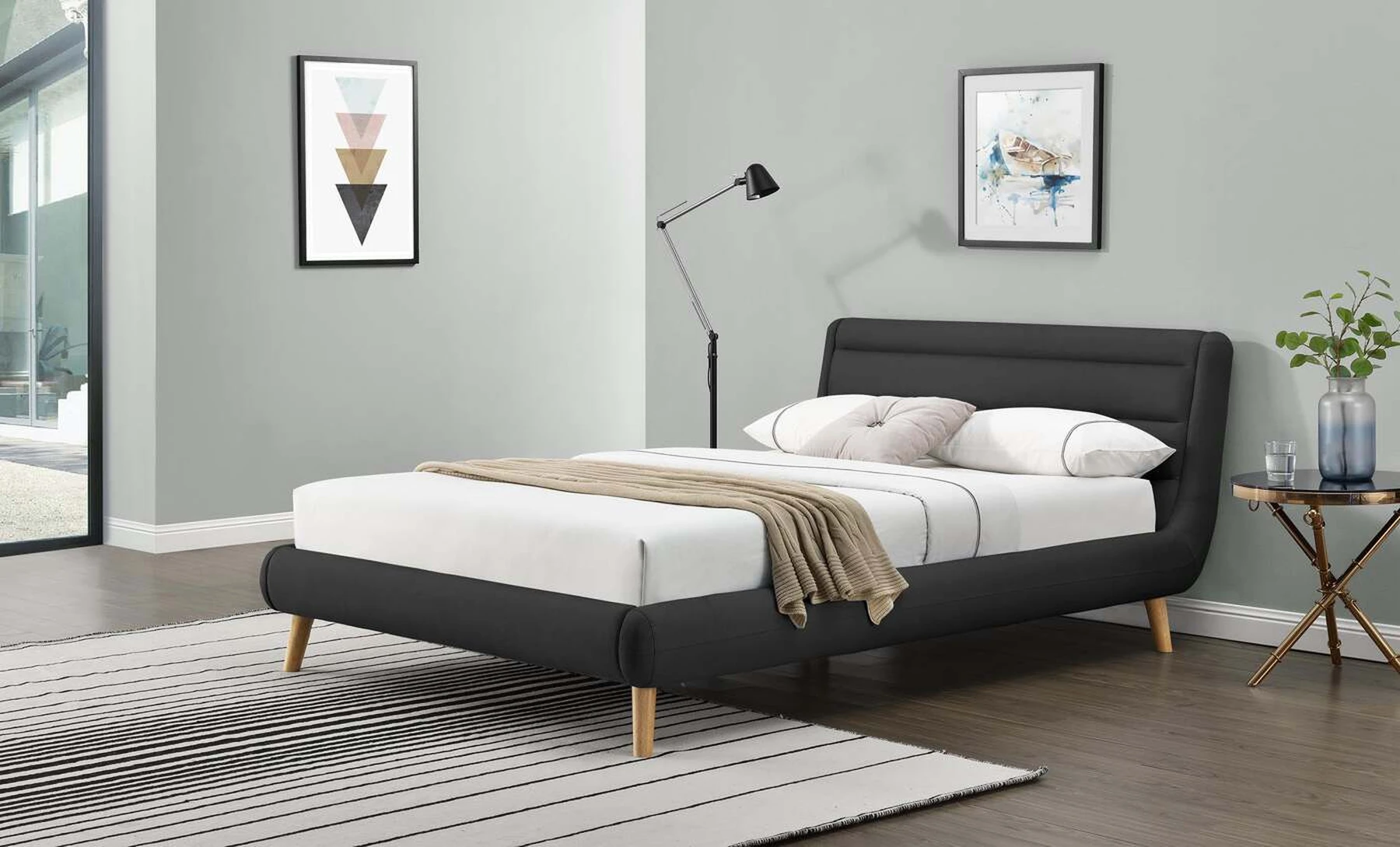 matmenys: 159/232/86 cm, medžiaga: audinys / medžio masyvas, spalva: audinys - tamsiai pilka, mediena - natūrali