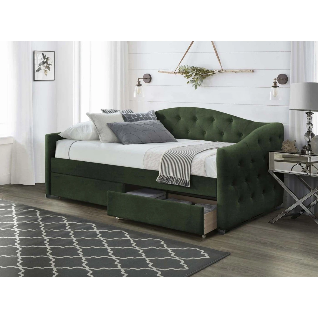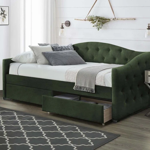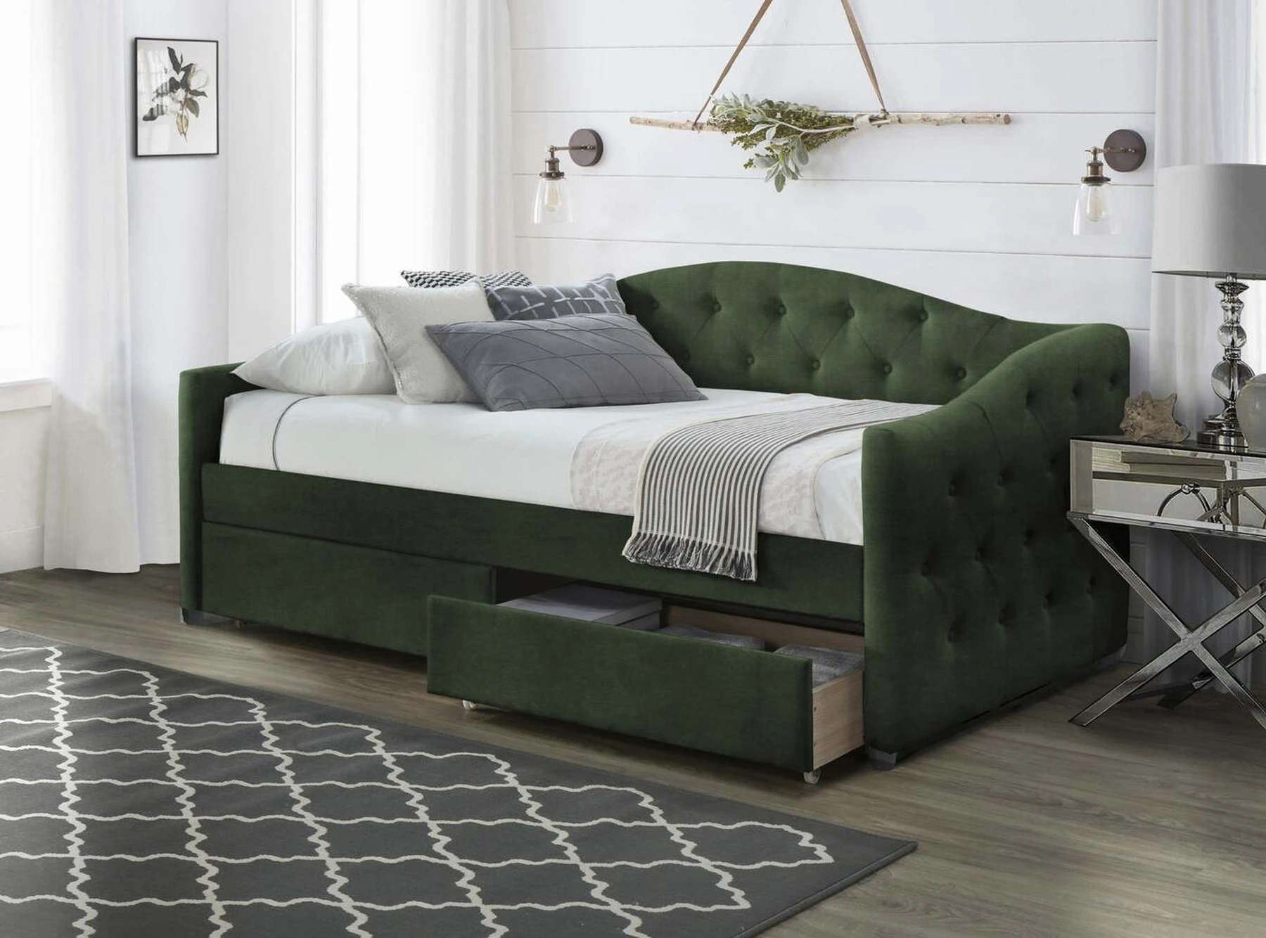 lova su stalčiais, medžiaga: audinys / plastikas / MDF, spalva: tamsiai žalia , * lova be čiužinio, pasirenkamas čiužinys POLARIS 90