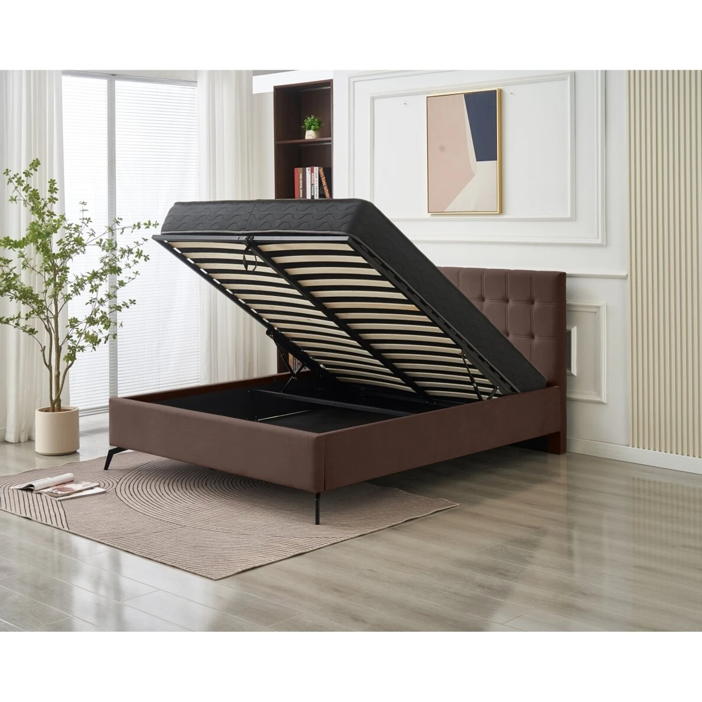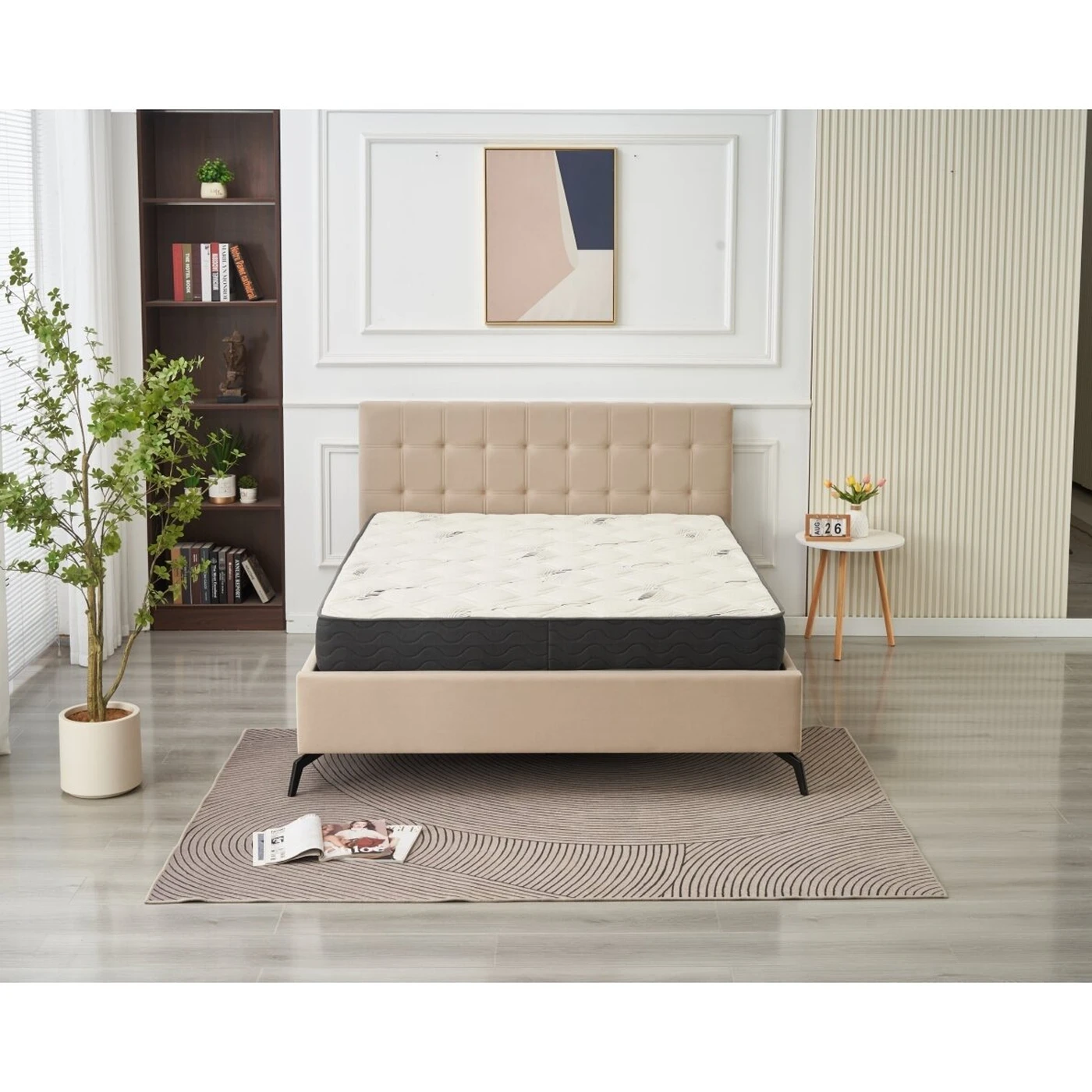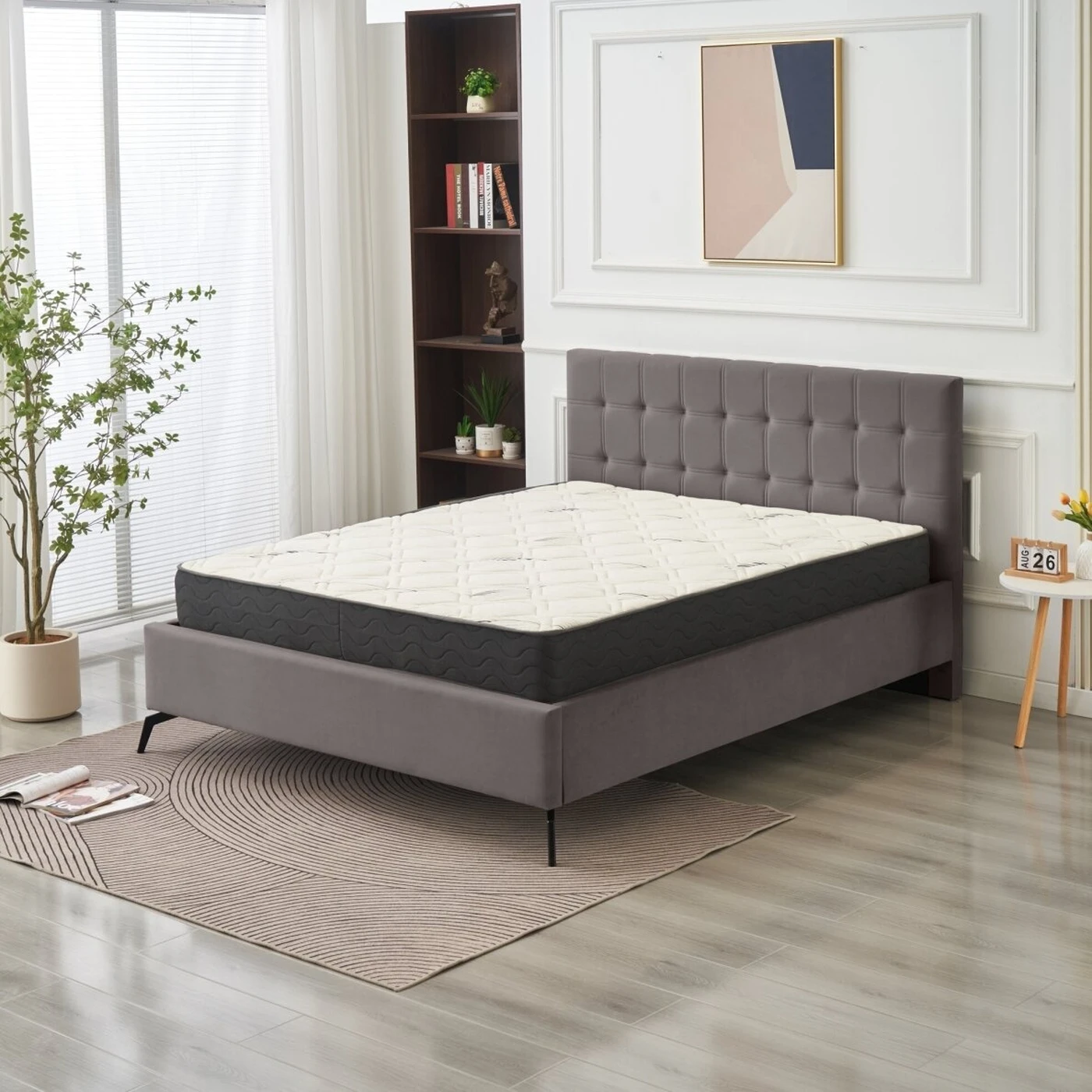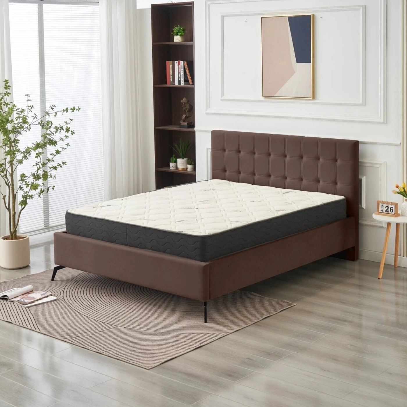 Lova „Terra“ žavi savo subtilių atspalvių gobelenu, kuris į miegamąjį įneša jaukumo ir natūralumo pojūtį. Kvadratiniais segmentais dekoruotas galvūgalis ne tik pabrėžia modernų dizainą, bet ir užtikrina patogų atsirėmimą skaitant ar ilsintis.