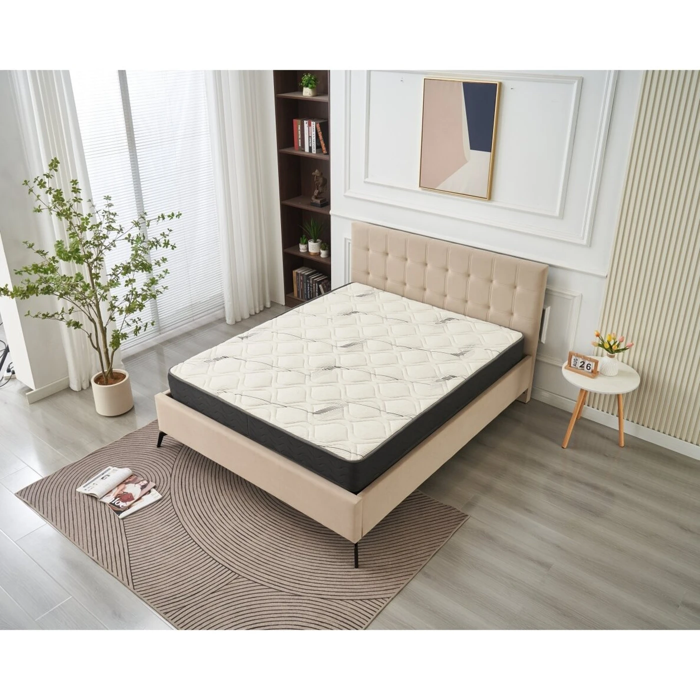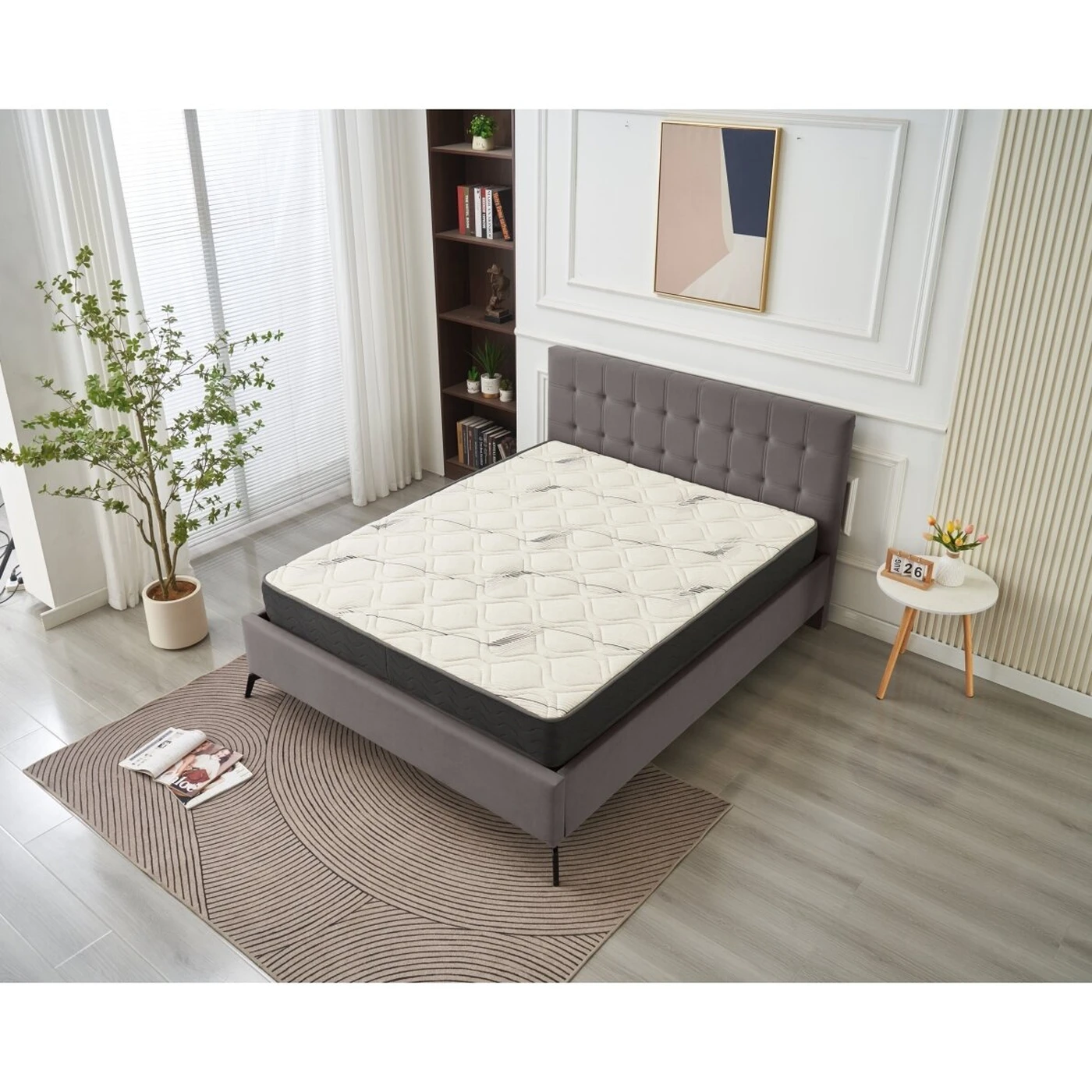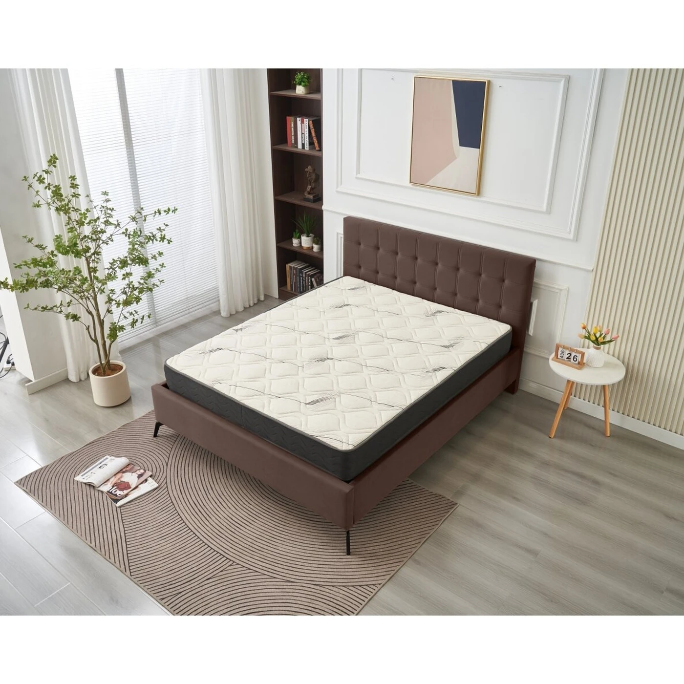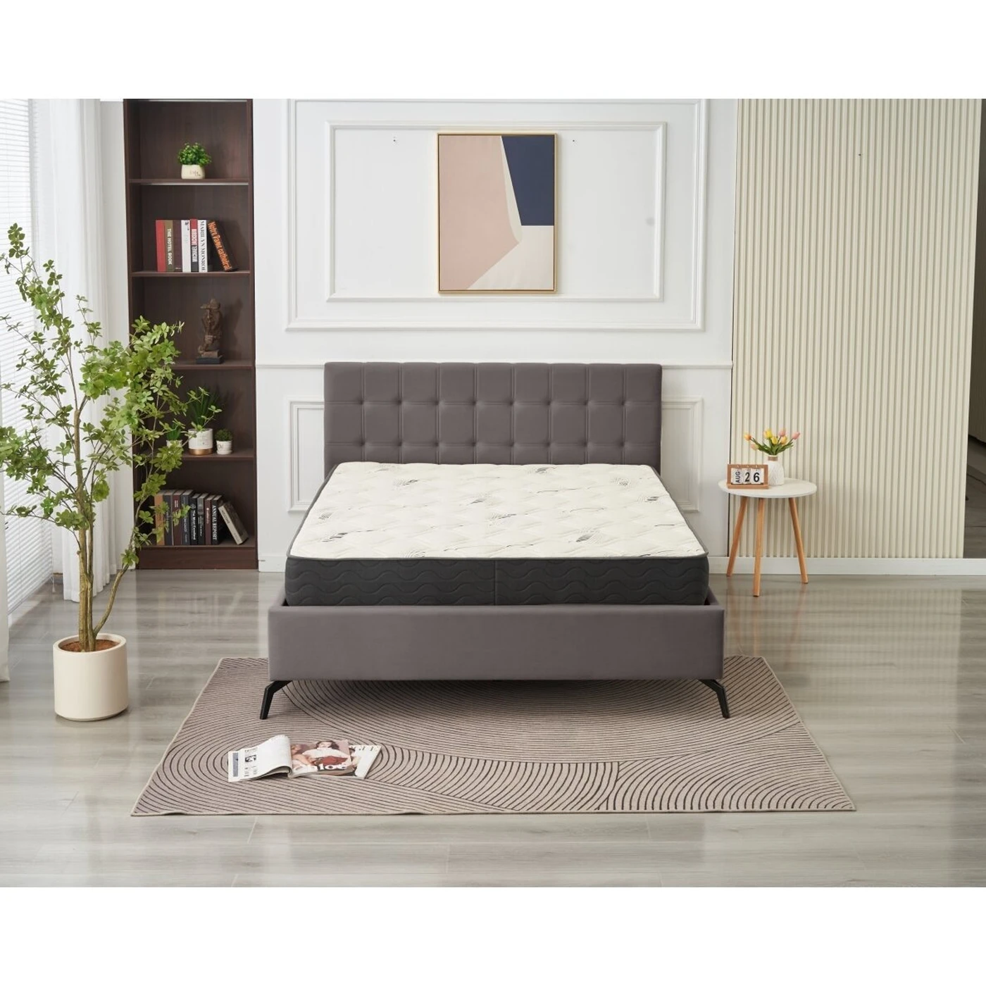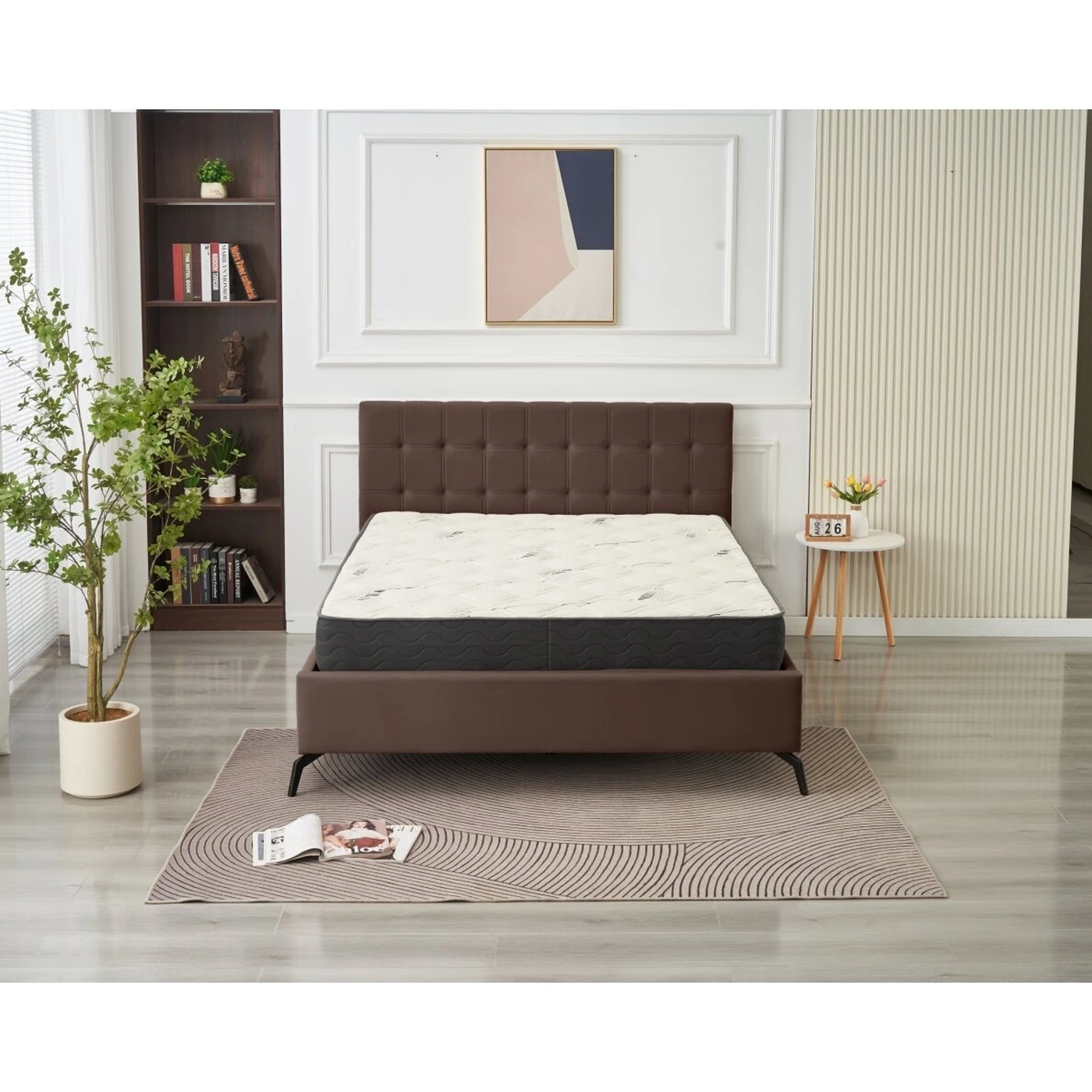 Lova „Terra“ žavi savo subtilių atspalvių gobelenu, kuris į miegamąjį įneša jaukumo ir natūralumo pojūtį. Kvadratiniais segmentais dekoruotas galvūgalis ne tik pabrėžia modernų dizainą, bet ir užtikrina patogų atsirėmimą skaitant ar ilsintis.
