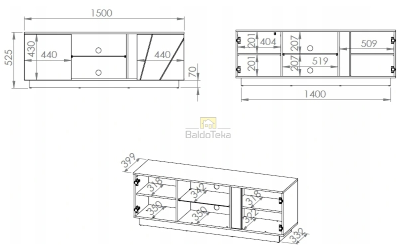 Plotis/Aukštis/Gylis: 150/53/40 cm.