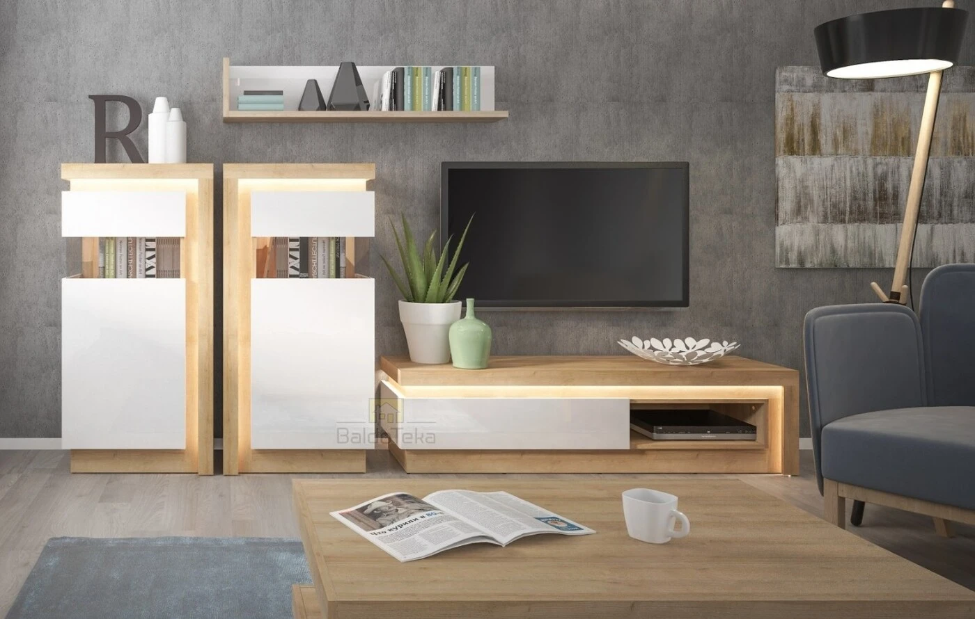 Spalva: šviesus ąžuolas riviera + balta blizgi.
