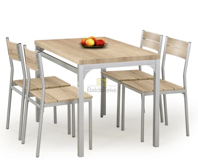 Elegantiškas stalas su 4 kėdėmis – šviesus ąžuolas sonoma