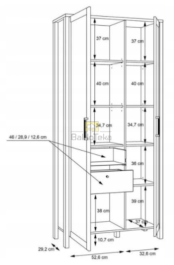 Plotis/Aukštis/Gylis: 96,5/206,7/41,4 cm.
