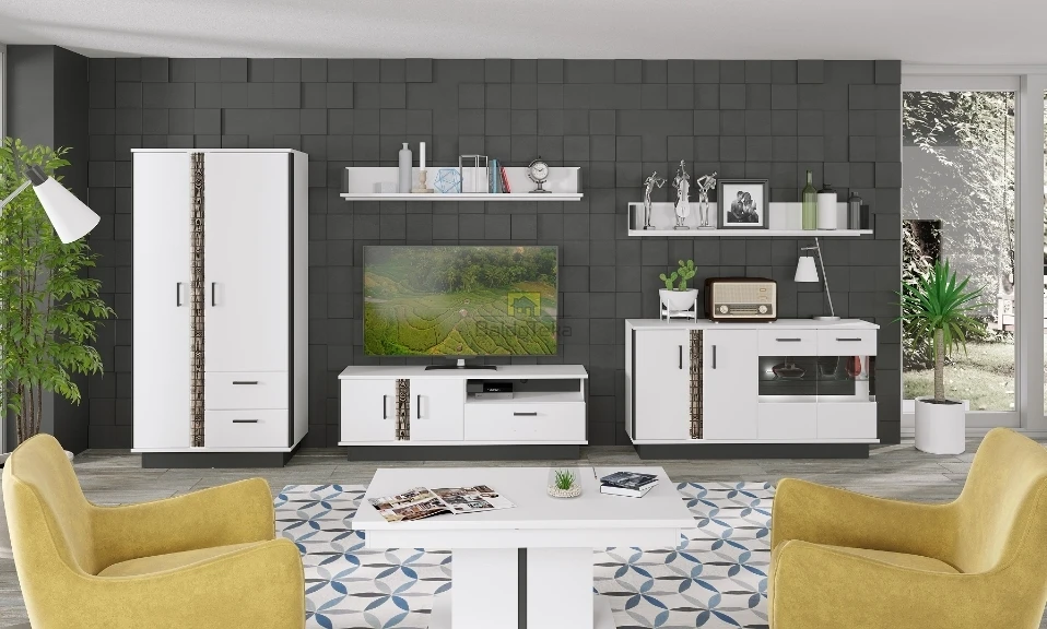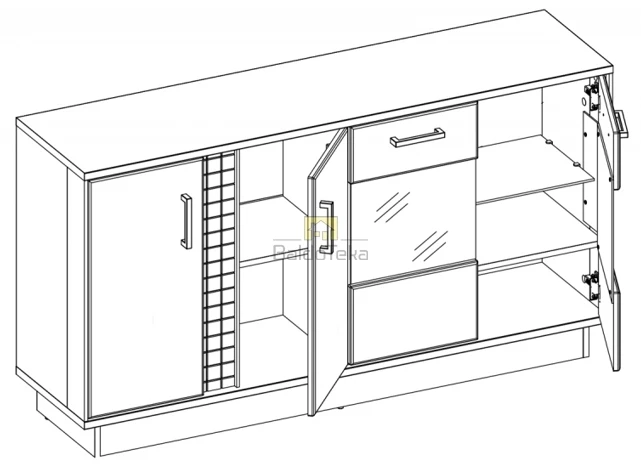 | Medžiagos | Korpusas: 16 mm LMDP/16 mm MDF; Fasadai: 18 mm MDF + PVC; Viršutinė plokštė: 22 mm LMDP |