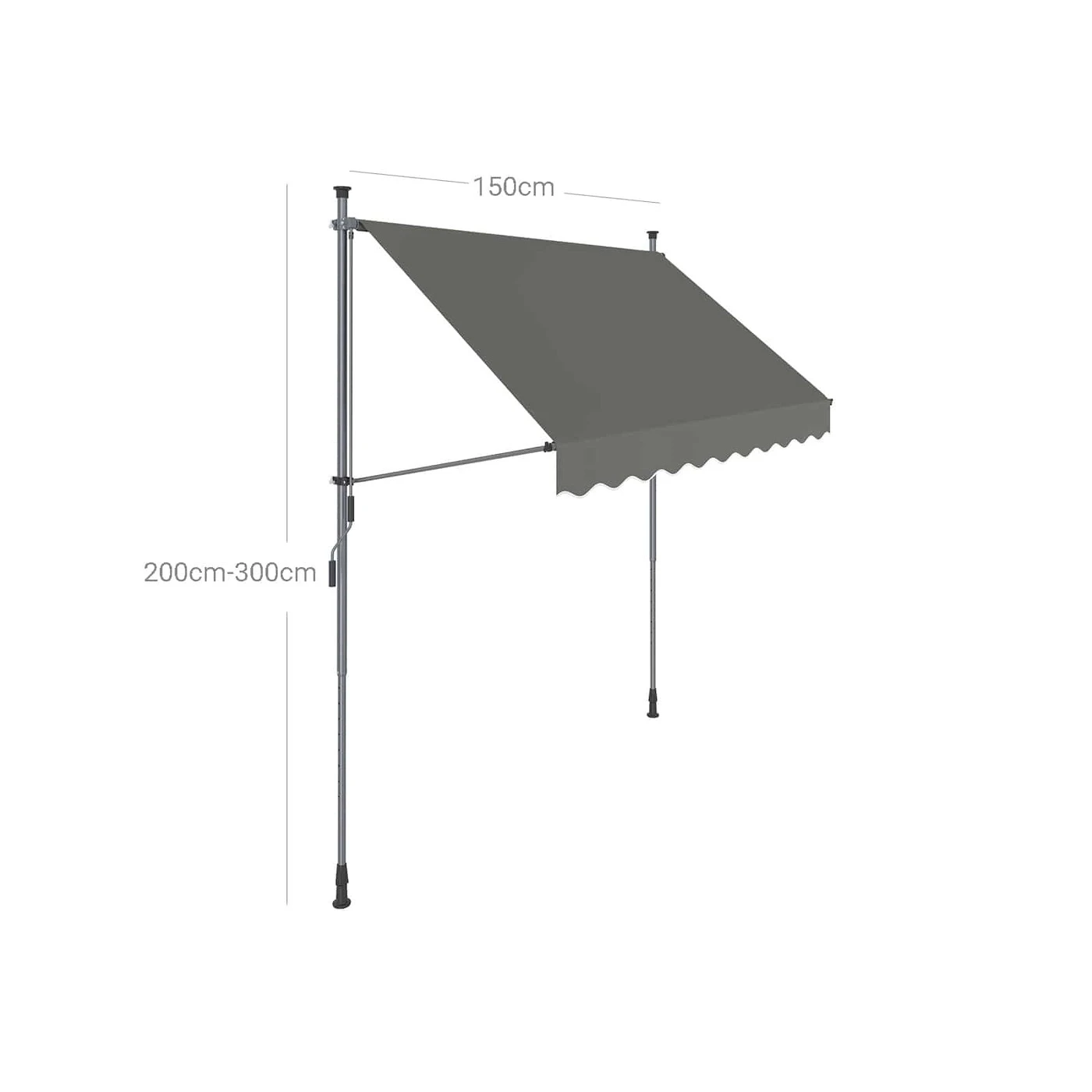Aprašymas buvo automatiškai išverstas, gali pasitaikyti klaidų.Nesudėtinga ir greitai sumontuojama Apsauga nuo saulės į jūsų namus atkeliauja jau surinkta. Toliau tereikia pastatyti rėmą ir sureguliuoti statramsčių bei markizės aukštį taip, kad vamzdžiai būtų tvirtai prispausti tarp grindų ir lubų. Idealiu atveju čia turėtų dalyvauti du žmonės. Idealiai tinka nuomojamiems apartamentams. Norint nustatyti šią spaustuką, nereikia varžtų. Dėl šios priežasties šis apsaugos nuo saulės tipas ypač tinka nuomojamiems butams, nes išvengia bet kokių diskusijų su nuomotoju, kuris gali nenorėti jokių nuolatinių įrengimų savo nuosavybėje. Stabilus ir stilingas Šis tentas yra ne tik praktiškas, bet ir stabilus bei atsparus oro sąlygoms. Geležies vamzdžiai sudaro vienetą su jūsų balkono lubomis ir grindimis ir sukuria tvirtą apsaugos nuo saulės karkasą. Markizės audinys turi PU dangą, kad nedidelis lietus nepakenktų.Informacija apie gaminį: - Spalva: pilka - Medžiaga: aliuminis (Ø 38 mm ritininis vamzdis), geležinis rėmas su milteliniu dažymu, 280 g/m² poliesteris su PU danga (markizės audinys) - Dydis: 150 x 130 cm (P x P) - Aukštis: 2-3 m - Svoris: 9 kg Pristatymo komplektacija: - 1 x spaustukas tentas su švaistikliu - 1 x instrukcija SONGMICS Pastabos: - Montavimą turėtų atlikti 2 žmonės. Surinkę patikrinkite stovo vamzdžių sandarumą - Nenaudokite gaminio esant stipriam vėjui, lietui ar sningant. Pasikeitus orams, nedelsdami atitraukite markizę, nes kitaip gali būti padaryta žala. - Visiškai ištraukus markizės audinį, toliau nesukite švaistiklio. - Audinį reikia nuvalyti minkšta šluoste, vandeniu arba švelnų ploviklį nuvalykite plovikliu sudrėkintu skudurėliu.