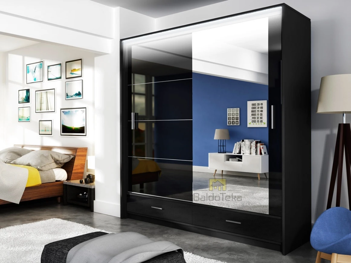 Spalva: korpusas – juodas matinis; fasadai – juodi blizgūs/veidrodis.Apšvietimas įskaičiuotas į kainą!
