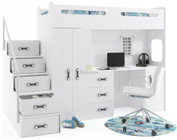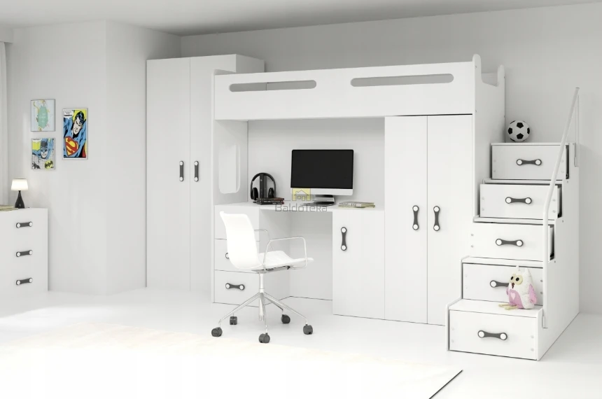 MAX 4 200*80 balta vaikiška lova + spinta + rašomasis stalas