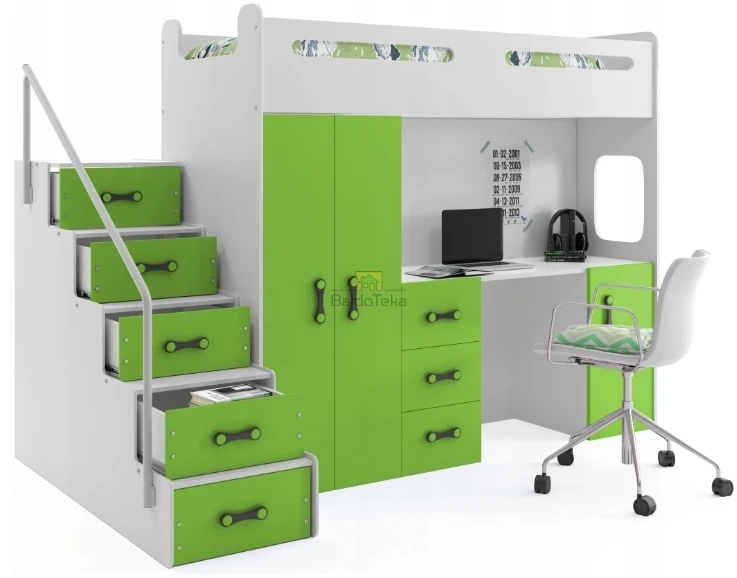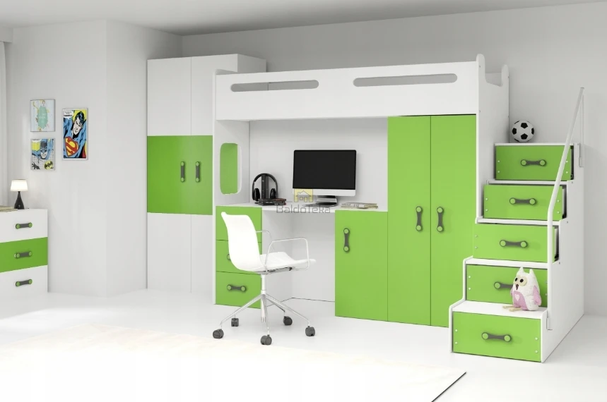 MAX 4 200*80, žalia vaikiška lova + spinta + rašomasis stalas