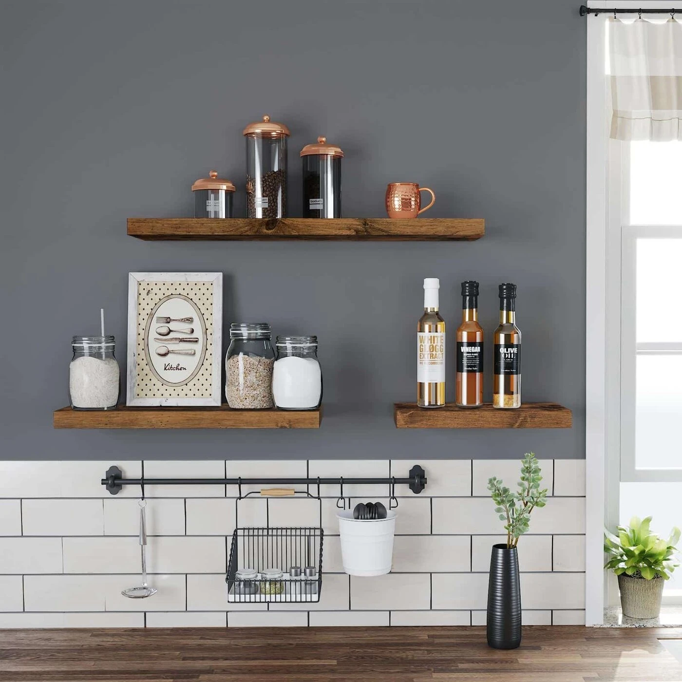 Aprašymas buvo automatiškai išverstas, gali pasitaikyti klaidų.Trūksta sandėliavimo vietos ant grindų? Tada žiūrėk aukštyn! Jūsų grindyse nepakanka vietos siaurai lentynai? Taigi ką daryti su savo dekoratyviniais daiktais, paveikslų rėmeliais, kolekcijomis ar prieskoniais? Nukreipkite dėmesį į savo sienas! Naudokite kaimišką rudą plaukiojančią lentyną (60 x 20 x 3,8 cm L/W/H) svetainėje, kad galėtumėte rodyti savo šeimos nuotraukas, vonios kambaryje laikyti muilą ir kitus tualeto reikmenis arba virtuvėje, jei norite susidėti prieskonių. Dviejų tipų sieniniai inkarai Nenorite važiuoti į techninės įrangos parduotuvę vien tam, kad nusipirktumėte kelis varžtus, kaiščius ir pan.? Jokių problemų, mes jums pateiksime skirtingus sieninius inkarus tvirtoms ir sausoms statybinėms sienoms. Taigi galite pradėti montuoti šią sieninę lentyną iškart po atskirų dalių išpakavimo.Informacija apie gaminį: - Spalva: ruda - Medžiaga: MDF plokštės (E1 klasė), lygintuvas - Matmenys: 60 x 20 x 3,8 cm (P x P x A) - Svoris: 1,9 kg - Maksimali apkrova (montuojant ant gipso kartono) : 10 kg - Maksimali apkrova (montuojant ant tvirtos sienos): 15 kg Pristatymo komplektacija: - 1 x sieninė lentyna - 1 x priedų krepšys - 1 x rankinis (DE, EN, FR, ES, IT) VASAGLE Pastabos: - Pritvirtinkite lentyną griežtai pagal instrukcijas. - Lentyną rekomenduojama montuoti ant tvirtos sienos (keliama iki 15 kg). Montuojamas ant gipso kartono sienos gali atlaikyti iki 10 kg apkrovą. - Nedėkite ant lentynos per sunkių daiktų. - Nelaikykite gaminio stiprioje saulės šviesoje ir nedėkite į drėgną aplinką.