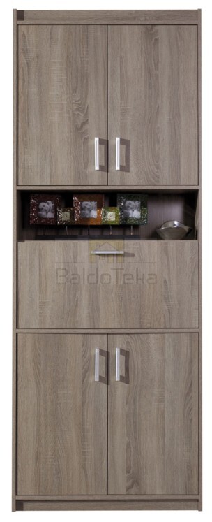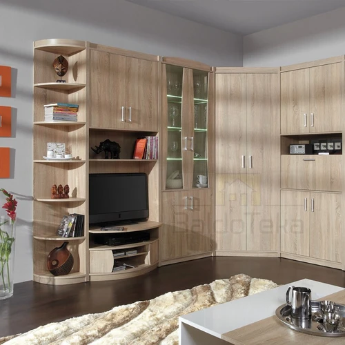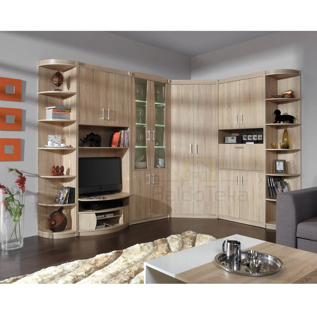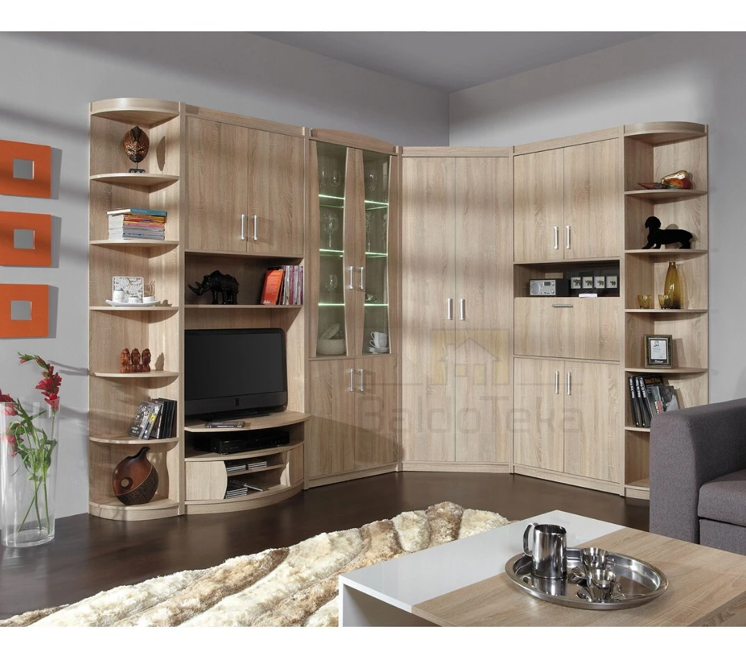 Komplektaciją sudaro: lentyna ME3 (2 vnt.), lentyna ME5, vitrina ME1, kampinė spinta ME8, lentyna ME7.