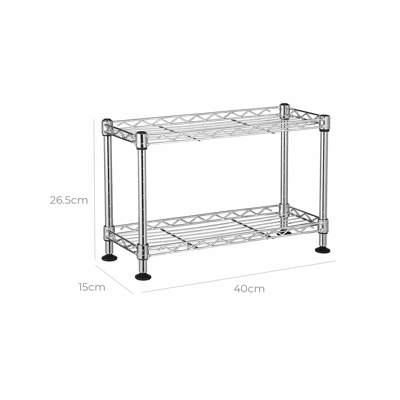 Aprašymas buvo automatiškai išverstas, gali pasitaikyti klaidų.Kaip paįvairinti savo virtuvę: įvairovė yra gyvenimo prieskonis. Tačiau kuo daugiau stiklinių ir butelių turite, tuo sunkiau palaikyti tvarką virtuvėje. Įsigykite šią erdvią 2 aukštų prieskonių lentyną ir laikykite prieskonius tvarkingai ir po ranka. Viskas, ką dabar turite padaryti, tai patobulinti savo maisto gaminimo įgūdžius. Pirmiausia stabilumas: paskutinis dalykas, kurio norite savo virtuvėje, yra nestabili lentyna, kuri nuolat apvirsta. Niekas nenori valyti virtuvės stalo, ant kurio buvo išsilieję rozmarinų, čiobrelių ir paprikos milteliai, tiesa? Su šia virtuvės lentyna pagaliau radote stabilius namus savo prieskonių stiklainiams, aliejaus buteliukams ir kt. Jame yra reguliuojamos kojelės, kurios kompensuoja nedidelius stalo paviršiaus nelygumus.Išsami informacija apie gaminį: Spalva: Sidabras Medžiaga: Chromuota geležis Dydis: 40 x 15 x 26,5 cm (I x P x A) Svoris: 1,1 kg Maks. Statinė lentynos apkrova: 20 kg Pristatymo komplektas: 1 x prieskonių lentynėlė 1 x instrukcijos (DE, EN, FR, ES, IT) SONGMICS Pastabos: Montuojant plastikinius spaustukus, rodyklė VIRŠUS visada turi būti nukreipta į viršų. Surinkę patikrinkite visus spaustukus, kad jie nejudėtų. Tinkamai įkiškite visus spaustukus į stovo vamzdžių įdubas, kad lentynos būtų lygiagrečios virtuvės stalui.