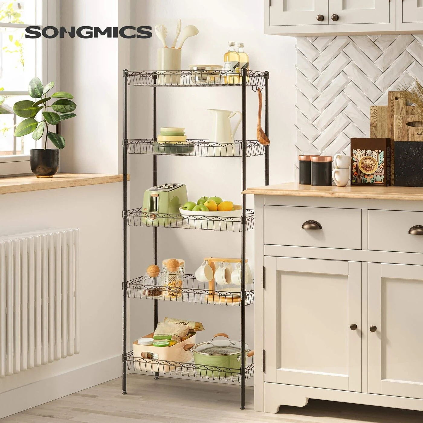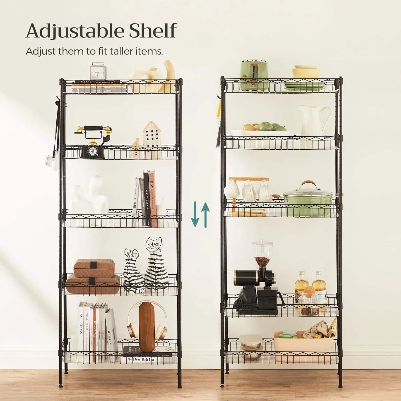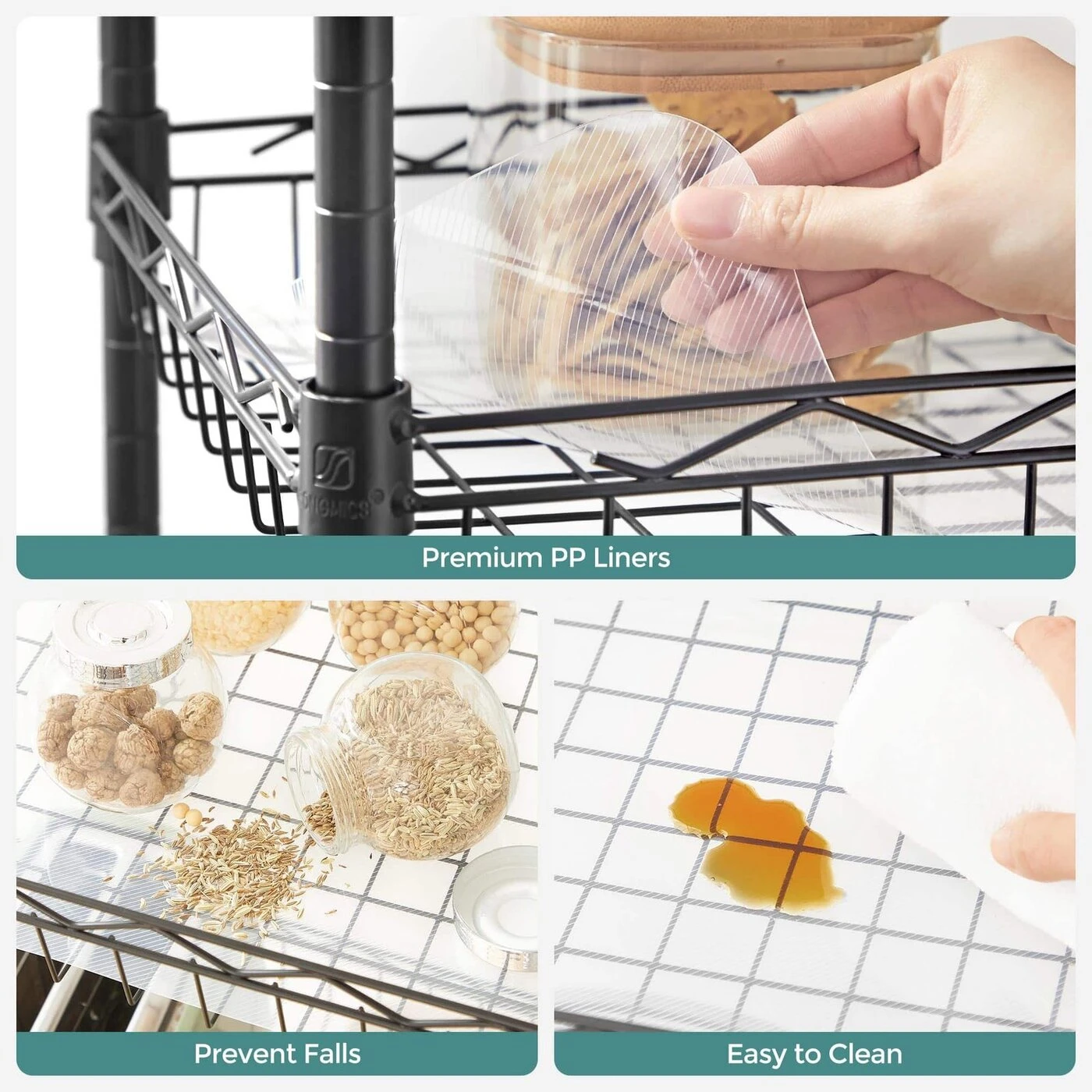 Aprašymas buvo automatiškai išverstas, gali pasitaikyti klaidų.Išsami informacija apie gaminį: Spalva: Juoda Medžiaga: Plienas Dydis: 60 x 30 x 150 cm (P x P x A) Svoris: 5,4 kg Maks. Statinė apkrova vienam lentynos lygiui: 20 kgPristatymo komplektacija: 1 x laikymo lentyna 5 x PP plokštė 4 x kabliukai 1 x apsauga nuo apvirtimo 1 x instrukcijos SONGMICS Pastabos: Montuojant plastikinius spaustukus, rodyklė VIRŠUS visada turi būti nukreipta į viršų. Surinkę patikrinkite visus spaustukus ir įsitikinkite, kad jie daugiau nejuda. Įsitikinkite, kad atraminiai spaustukai yra pritvirtinti prie 4 vamzdžių tame pačiame aukštyje, kad lentynos būtų horizontalioje plokštumoje. Didžiausia statinė apkrova vienam lentynos lygiui yra 20 kg. Prašome neviršyti šio maksimalaus svorio. Pritvirtinkite gaminį prie sienos su apsaugos nuo apvirtimo įtaisu, kad užtikrintumėte saugų naudojimą.