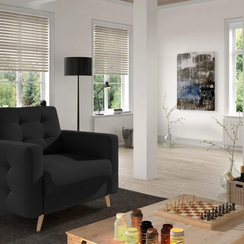 Miegamas fotelis "KAMPIS" - puikus sprendimas mažoms erdvėms. Kompaktiškas ir patogus fotelis, tinkantis atsipalaiduoti po sunkios dienos, skaityti knygas, žiūrėti televizorių, o esant reikalui - patogiai praleisti naktį.