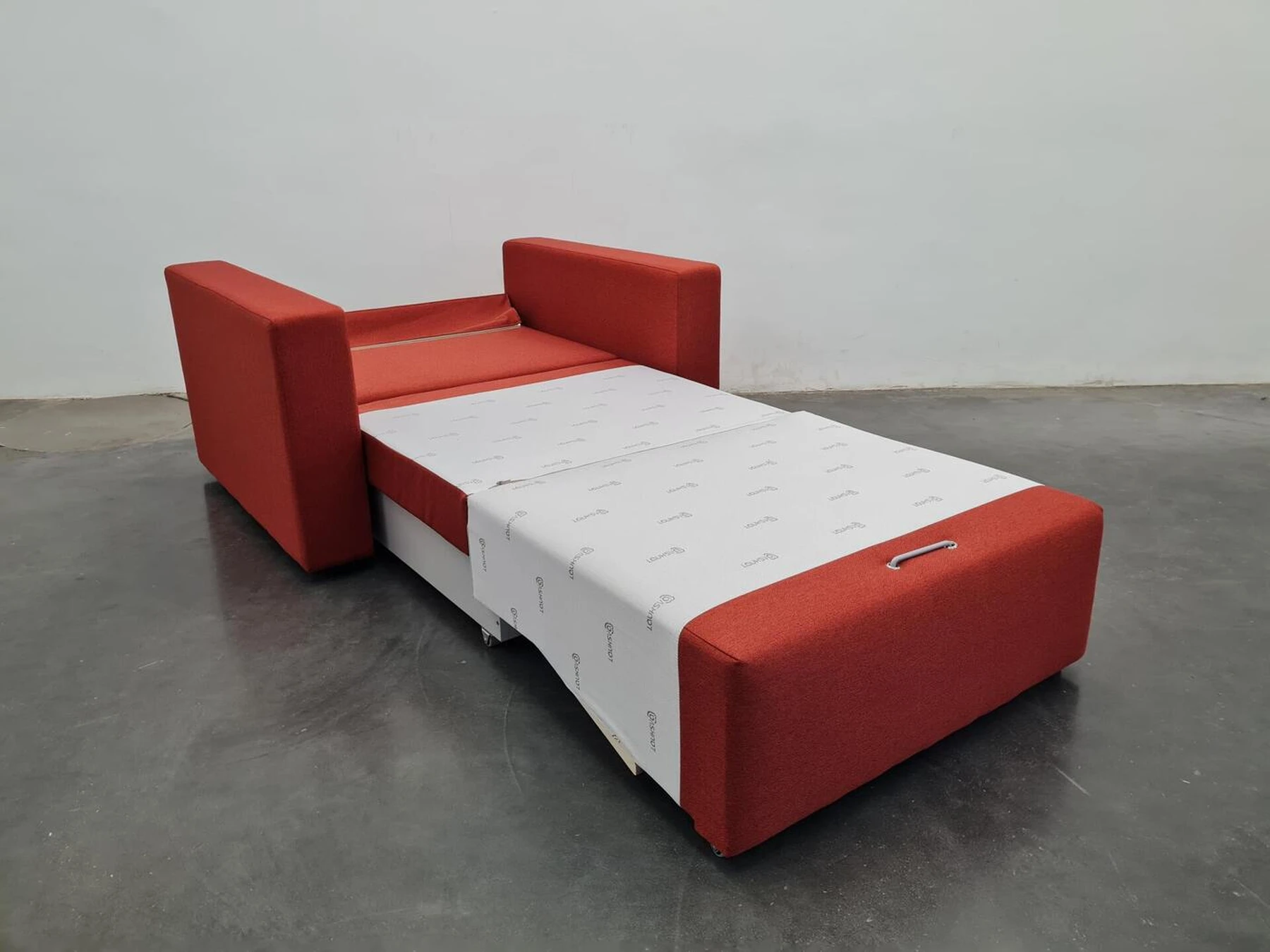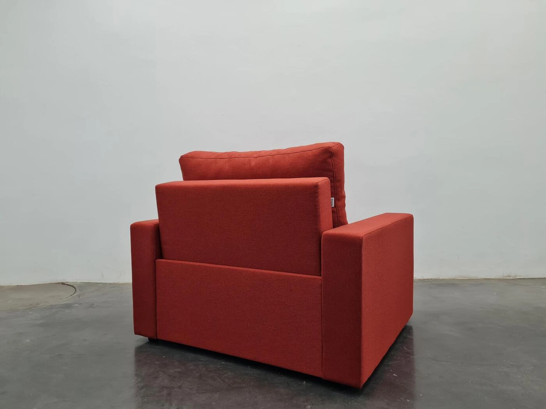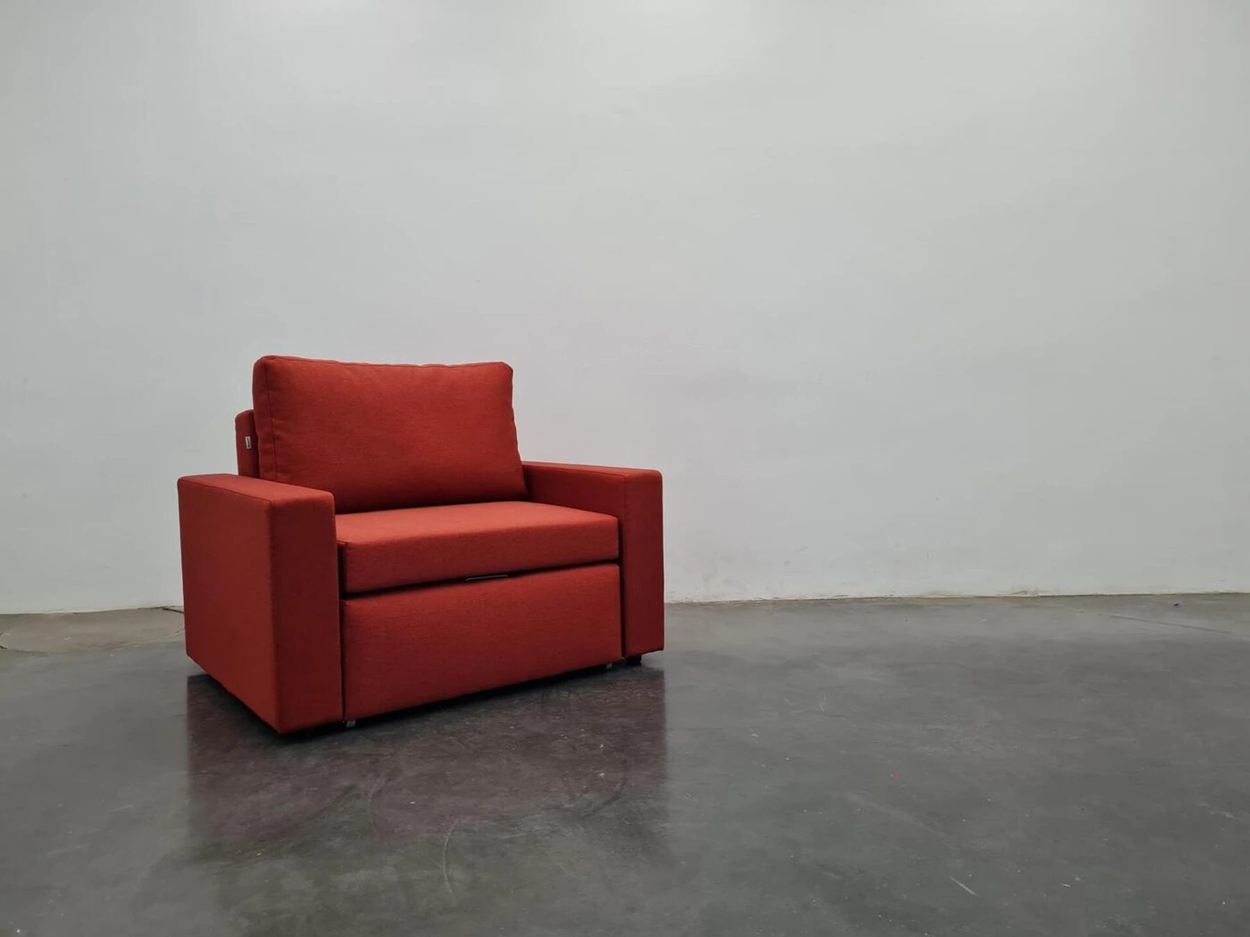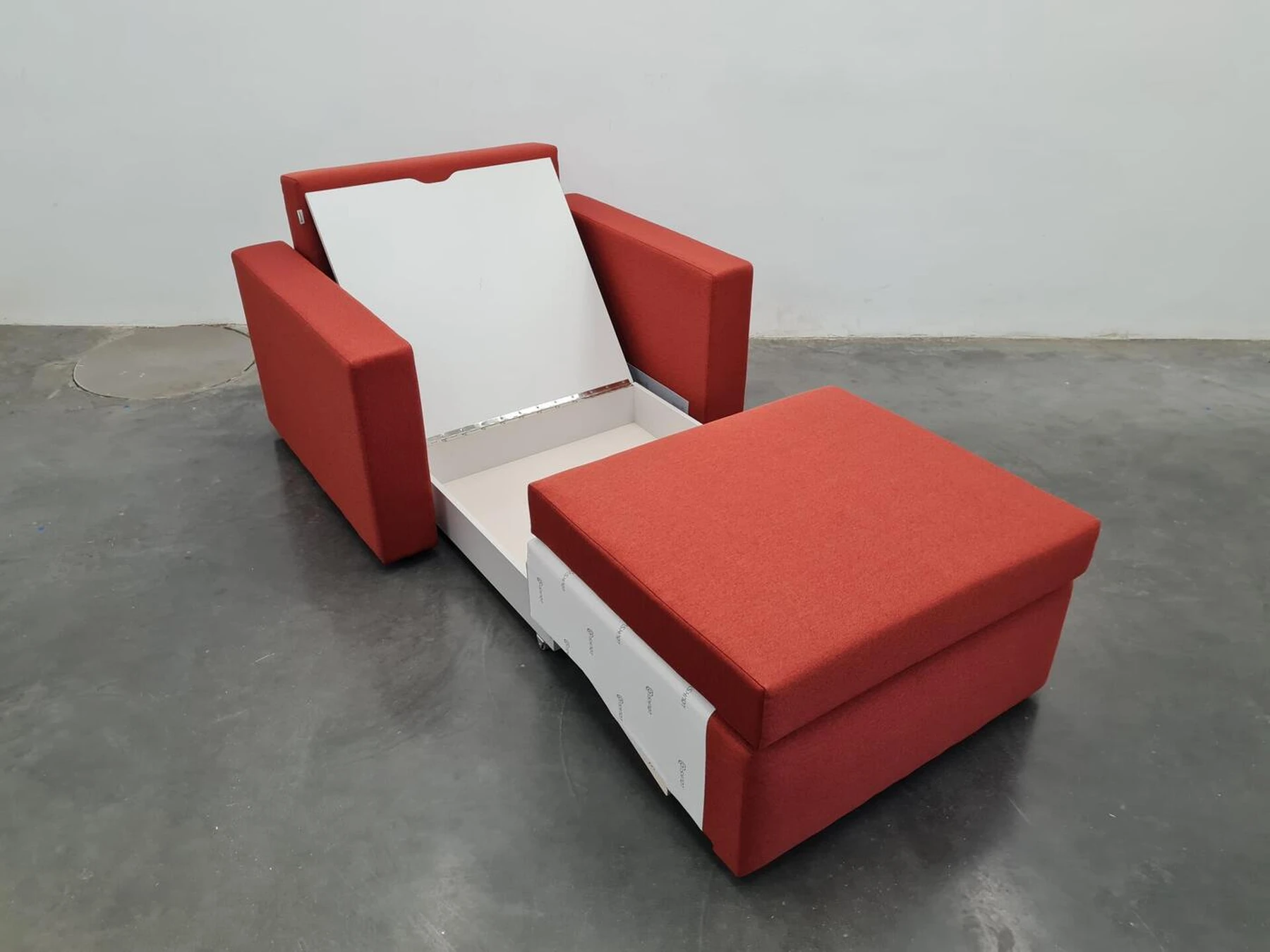 Viensėdis fotelis su išskleidžiamu miegamu mechanizmu, patalynės dėže ir 16 cm pločio porankiais.