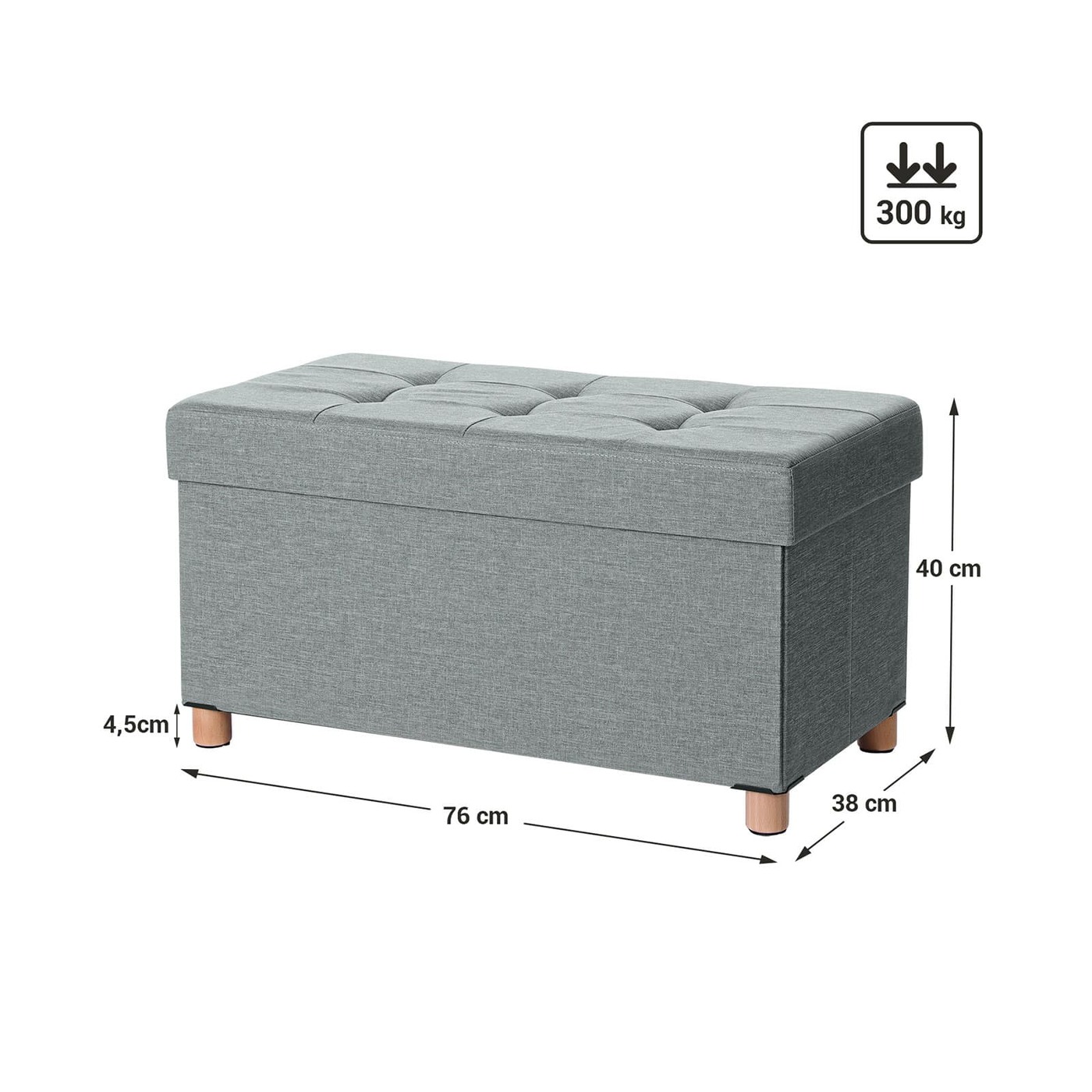 Aprašymas buvo automatiškai išverstas, gali pasitaikyti klaidų.Sutaupysite daugiau vietos nei sofa ar drabužių spinta Užuot pirkę kitą sofą papildomai sėdėti arba naują spintą, kad būtų daugiau vietos, su šiuo vietos taupančiu pufu galite vienu šūviu nužudyti du paukščius. Ką daryti su šia taburete? Priešais sofą svetainėje? Jūsų lovos gale miegamajame? Ar prie rūbinės koridoriuje? Vienintelė riba yra jūsų vaizduotė! Jei nenorite naudoti sėdynės krūtinės, galite ją sulankstyti ir tiesiog laikyti po lova arba ant lentynos. Prekės informacija: - Spalva: šviesiai pilka - Medžiaga: lino imitacija, MDF (vidutinio tankio medienos plaušų plokštė), putplastis, medžio masyvas - Matmenys: 76 x 38 x 40 cm (P x P x A) - Maks. statinė apkrova: 300 kg Pristatymo apimtis: - 1 x suoliukasPrekės informacija: - Spalva: šviesiai pilka - Medžiaga: lino imitacija, MDF (vidutinio tankio medienos plaušų plokštė), putplastis, medžio masyvas - Matmenys: 76 x 38 x 40 cm (P x P x A) - Maks. statinė apkrova: 300 kg Pristatymo apimtis: - 1 x suoliukas