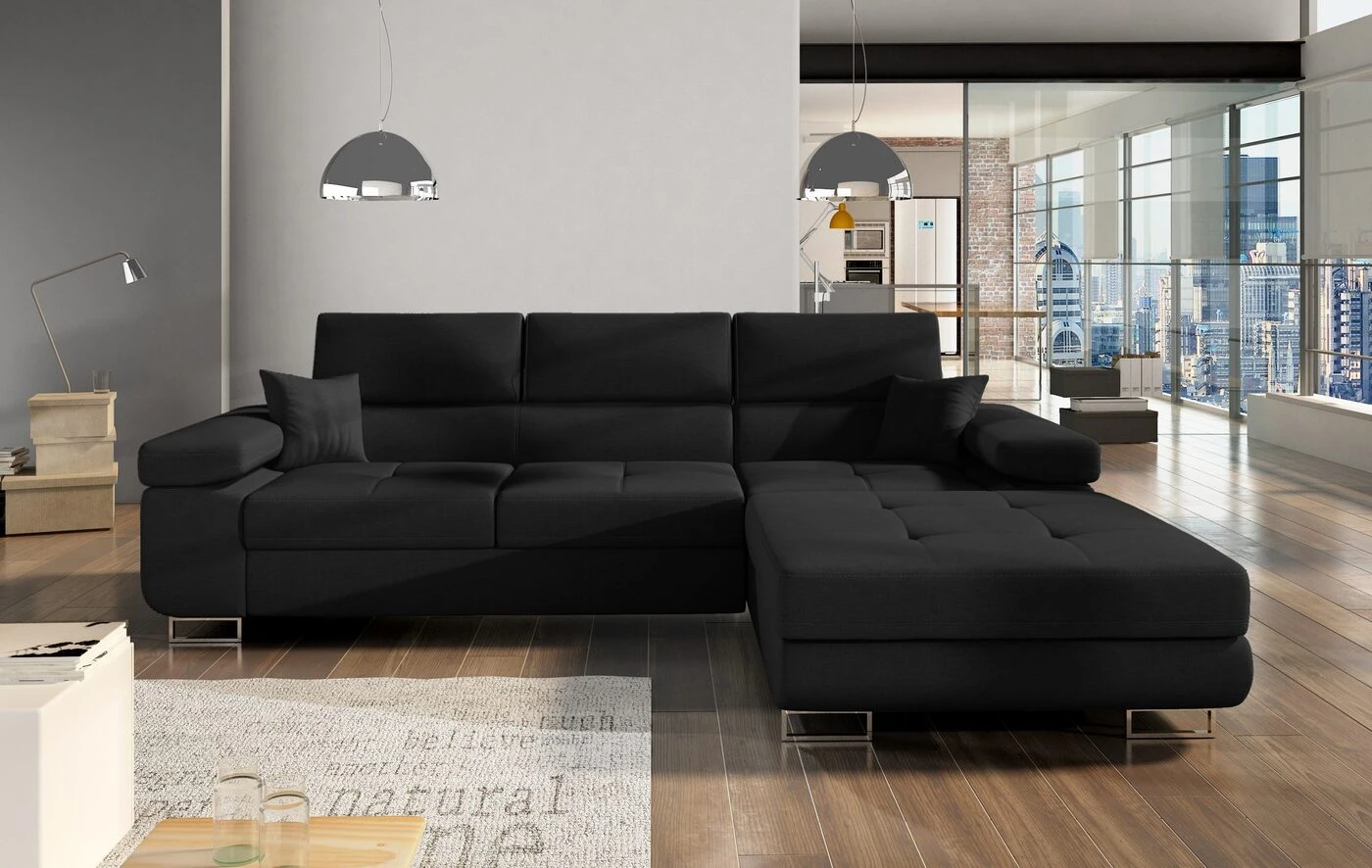 Modernus originalaus dizaino baldas, kurio stilinga išvaizda puikiai užpildys bet kurios svetainės interjerą. Modelis taip pat turi patalynės dėžę bei miegojimo funkciją, kuri neabejotinai padidina baldo funkcionalumą.