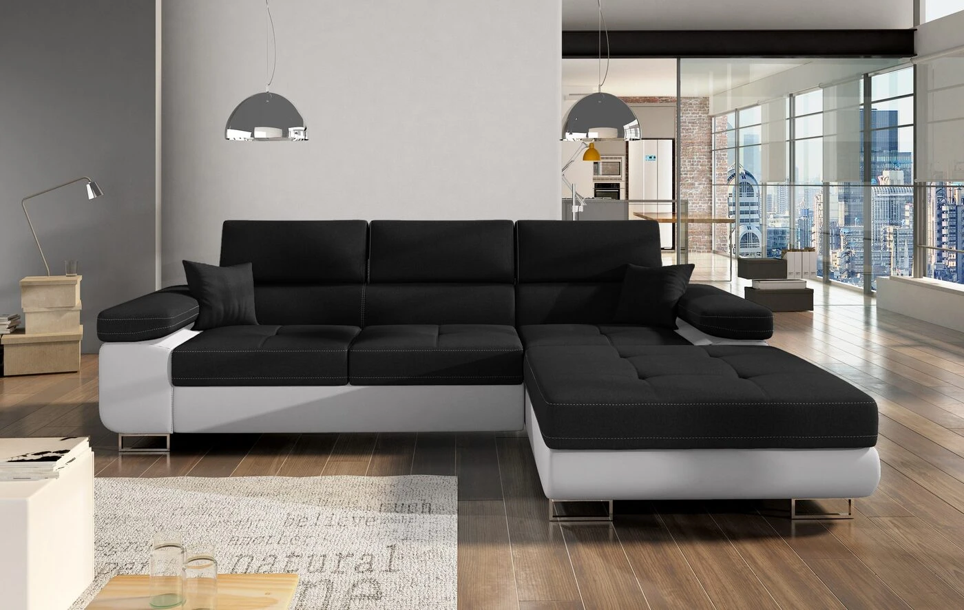 Modernus originalaus dizaino baldas, kurio stilinga išvaizda puikiai užpildys bet kurios svetainės interjerą. Modelis taip pat turi patalynės dėžę bei miegojimo funkciją, kuri neabejotinai padidina baldo funkcionalumą.